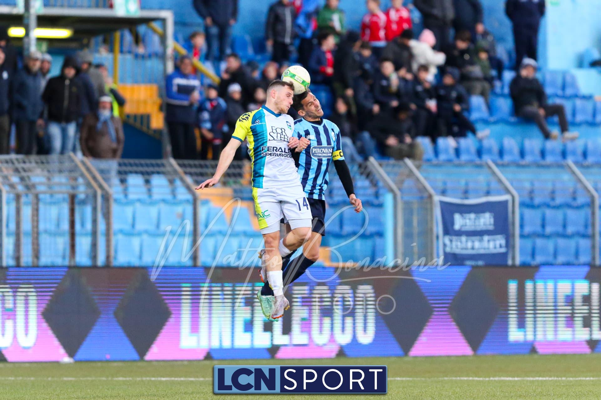 Punizione di Palazzi alla mezz’ora, la palla sfila pericolosissima fino al secondo palo, smanacciata decisiva di Melgrati che consente ad Ardizzone di anticipare Di Gennaro. Il Lecco si sveglia dal torpore al 38′ con un gran destro di Zuccon, palla alta. Lepore cerca di trovare la difesa impreparata al 43′ con un gran destro teso, mezzo tiro e mezzo cross su cui però non arriva nessuno.