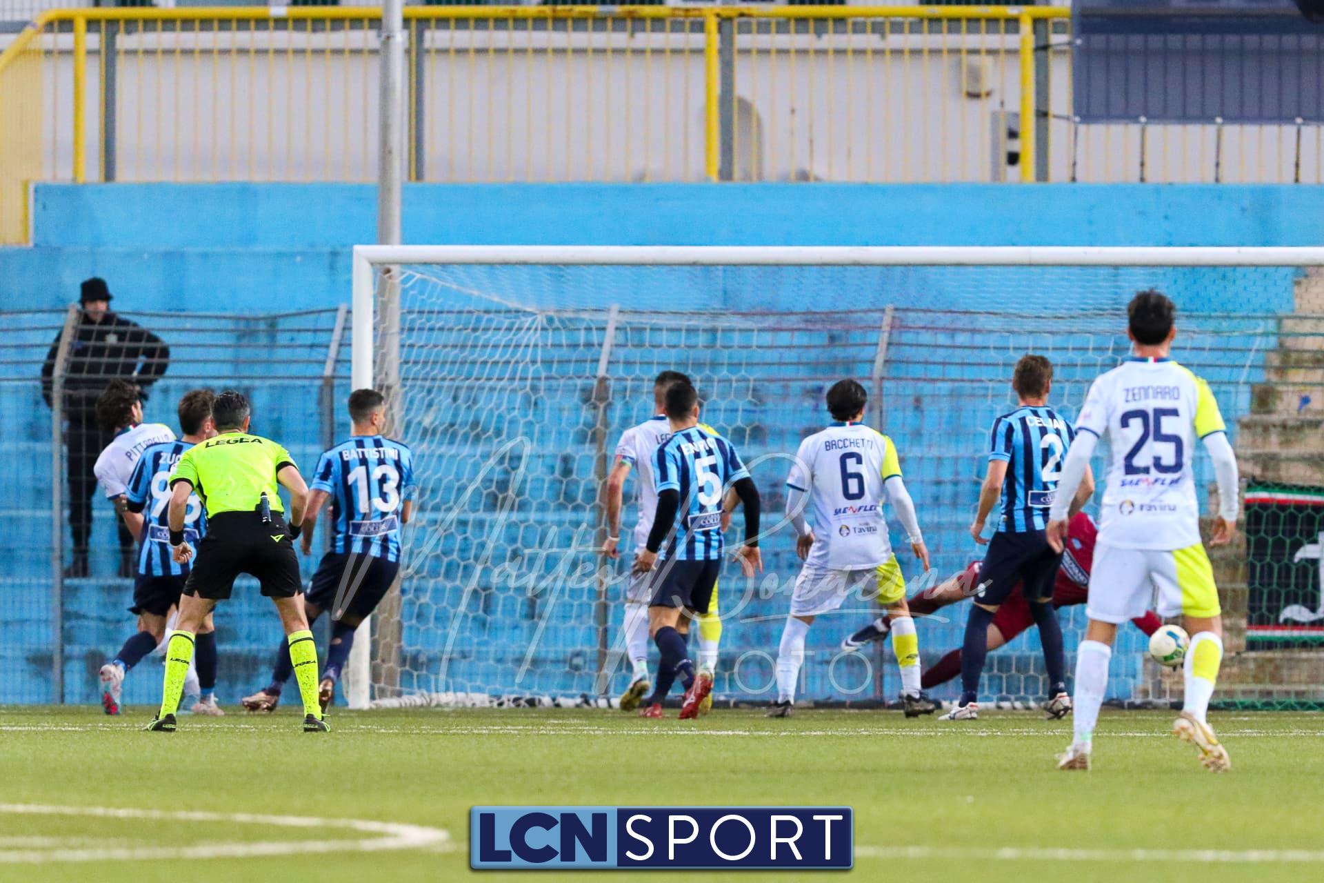 Al 63′ punizione di Lepore dai 25 metri sul secondo pallo, torre di Battistini in mezzo per Pinzauti che aggancia ma al momento di calciare trova un muro davanti a sé. Occasionissima per Zennaro al 71′: nel traffico calcia rasoterra e Melgrati riesce a tuffarsi deviando all’angolino.
