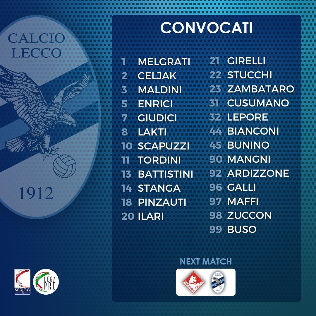 Verso Piacenza-Lecco, i convocati di mister Luciano Foschi
