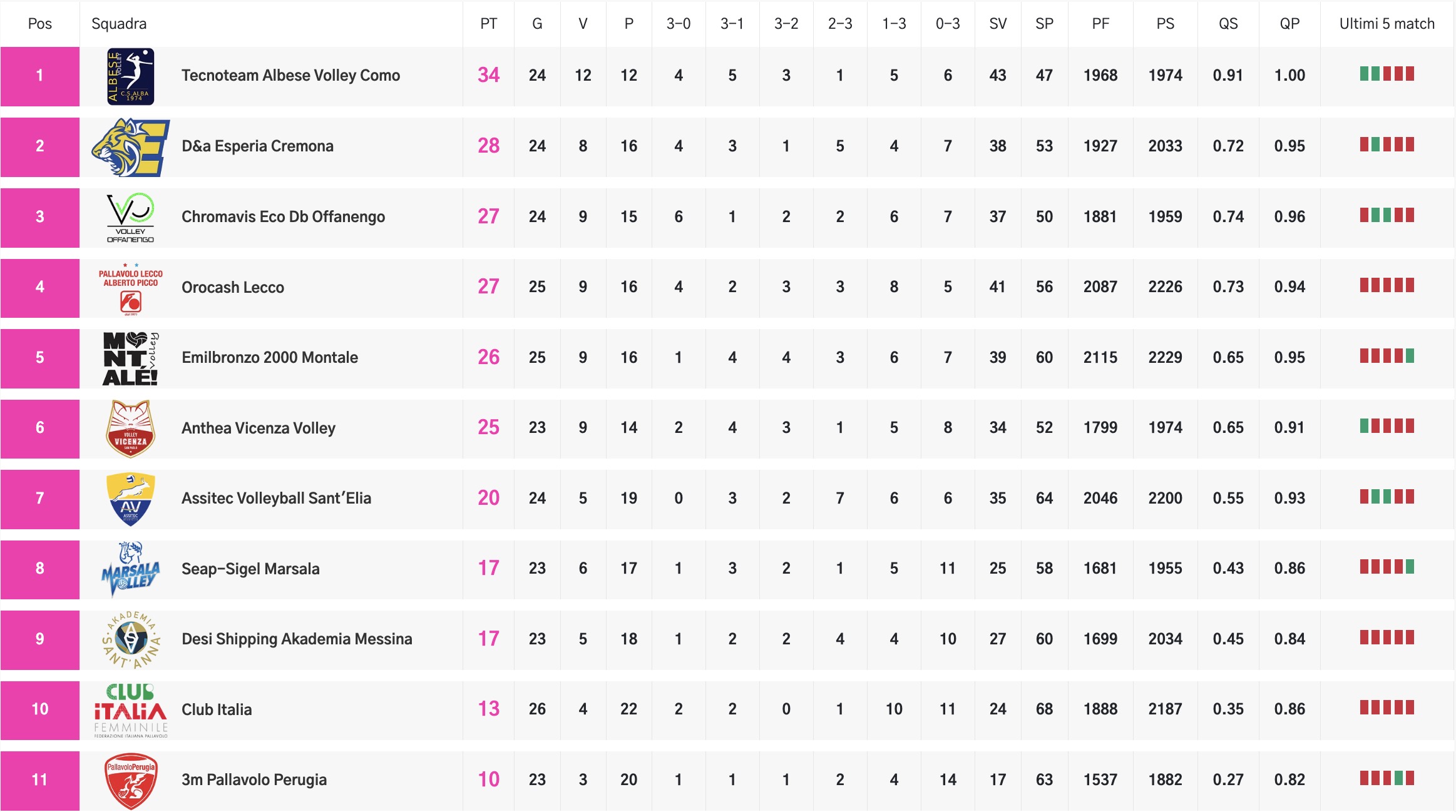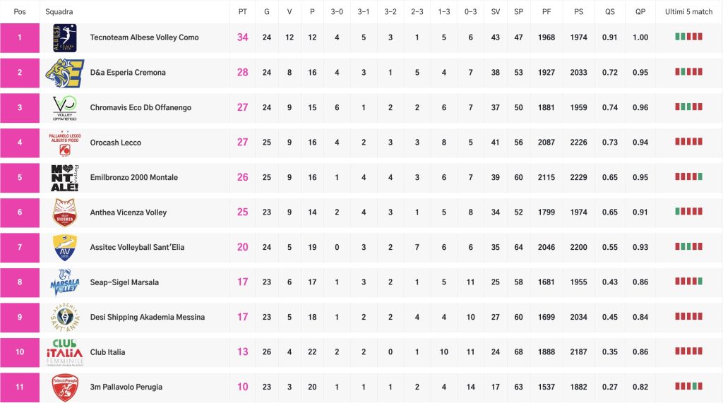 Terzo impegno in una settimana per la Orocash Picco Lecco. La compagine biancorossa, incassate la sconfitta di Vicenza prima (3-1) e la vittoria di Sant’Elia poi (2-3), fa rientro al “Bione” e riceve la Seap-Sigel Marsala che ha impattato non male la Pool Salvezza: vittoria con Esperia Cremona (3-2), sconfitta netta con Volley Offanengo (3-0) e nuovo successo interno con il Club Italia (3-1) nel recente turno infrasettimanale. Nel frattempo è stata disputata, nel pomeriggio di sabato, la sfida tra lo stesso federale e la Assitec Sant’Elia, vinto dalle ospiti (2-3) dopo una gara dai tanti volti. A Lecco, invece, le squadre scenderanno in campo alle 15 di domenica 29: «La vittoria infrasettimanale ci dà tanto entusiasmo per affrontare le prossime sfide – spiega coach Gianfranco Milano -. Le ragazze devono essere aggressive e vive per conquistare punti. Dopo vari mesi di campionato le energie sono un tema importante e chi saprà gestirle al meglio sarà favorito nella lotta alla salvezza. Marsala, nonostante le poche vittorie della regular season, si presenta con due vittorie su tre nella Pool Salvezza. È viva e pronta. Contiamo sul pubblico che ci possa sostenere in questi momenti e speriamo di conquistare il punteggio pieno».