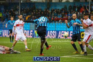 Il ritmo cala, al 72′ colpo di testa di Mbakogu alta in curva Nord. Ci prova Lepore al 75′ con un tiro da fermo, alto non di molto. Ilari di testa gira bene ma trova una deviazione in corner. Dall’angolo Battistini colpisce a sua volta di testa e la palla, lenta, colpisce la traversa. Mangni ha una buona opportunità all’84’ al limite dell’area piccola, ma calcia alto. All’85’ rosso diretto a Pezzella, entrato da pochi minuti per un fallo su Lakti. La partita si spegne, come le ultime, e fila via sullo 0-0.
