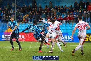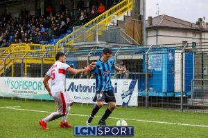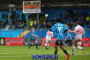 Al 35′ incredibilmente out Tordini e dentro Lakti (scelta tecnica?). Subito dopo possibile rigore Lecco per un fallo di Piacentini che frana addosso a Buso in area. I blucelesti ci provano, cross di Lepore al termine di una serie di pregevoli finte, Pinzauti si avvita ma non riesce a dare forza e la palla sfiora il palo alla sinistra di Matosevic.