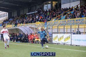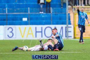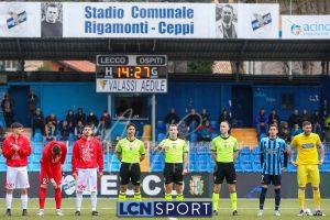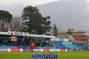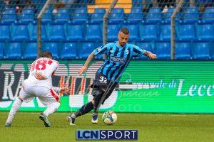 Al 25′ bella punizione di Giudici da sinistra: la palla, tesa e forte, scorre e passa in mezzo a numerosi uomini ma nessuno del Lecco riesce a intervenire davanti alla porta. Al 28′ occasione per gli alabardati da corner, con un colpo di testa che Buso intercetta davanti a Melgrati. A gioco fermo giallo a Gori per uno schiaffo a Buso (passibile di rosso diretto). Buon momento per gli ospiti, che conquistano diversi calci d’angolo.
