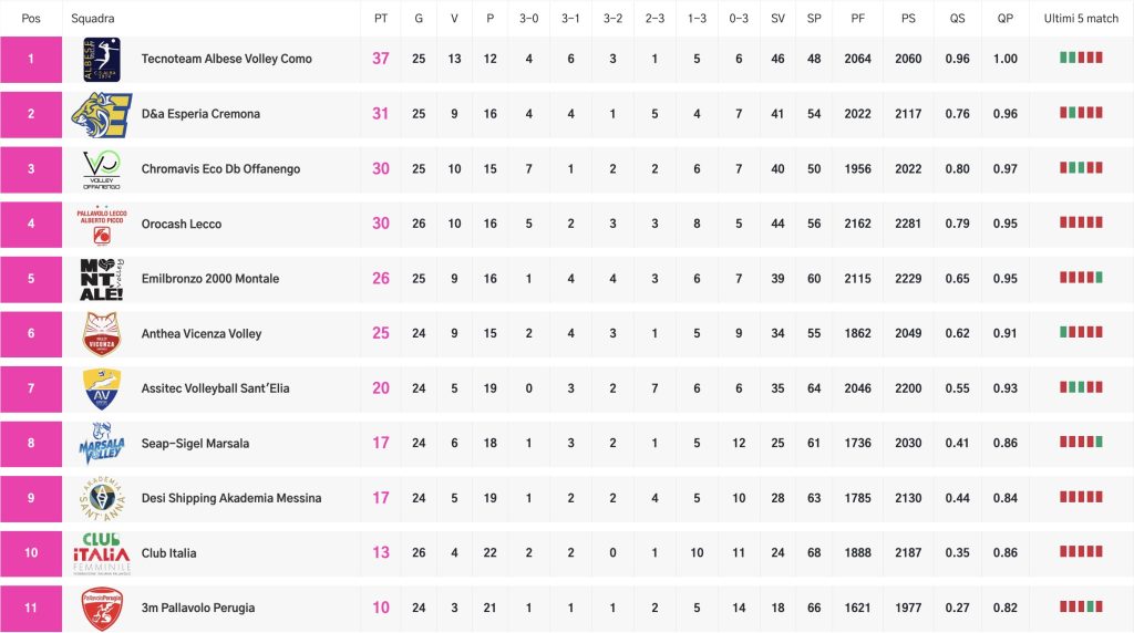 «Lecco si è resa protagonista di un buon percorso di crescita – analizza invecehe il tecnico di Perugia Guido Marangi -. Sono una squadra che gioca una pallavolo veloce e tecnica. Si sono portate dietro molti punti dalla regular season e questo testimonia il loro valore». La 3M avrà tutta la rosa a disposizione a eccezione della lungodegente Francesca Dalla Rosa, apprezzata ex della gara che ha accusato un grave infortunio mesi fa, e di una Traballi a mezzo servizio. Arbitra la coppia formata da Luca Pescatore e Giorgia Adamo.