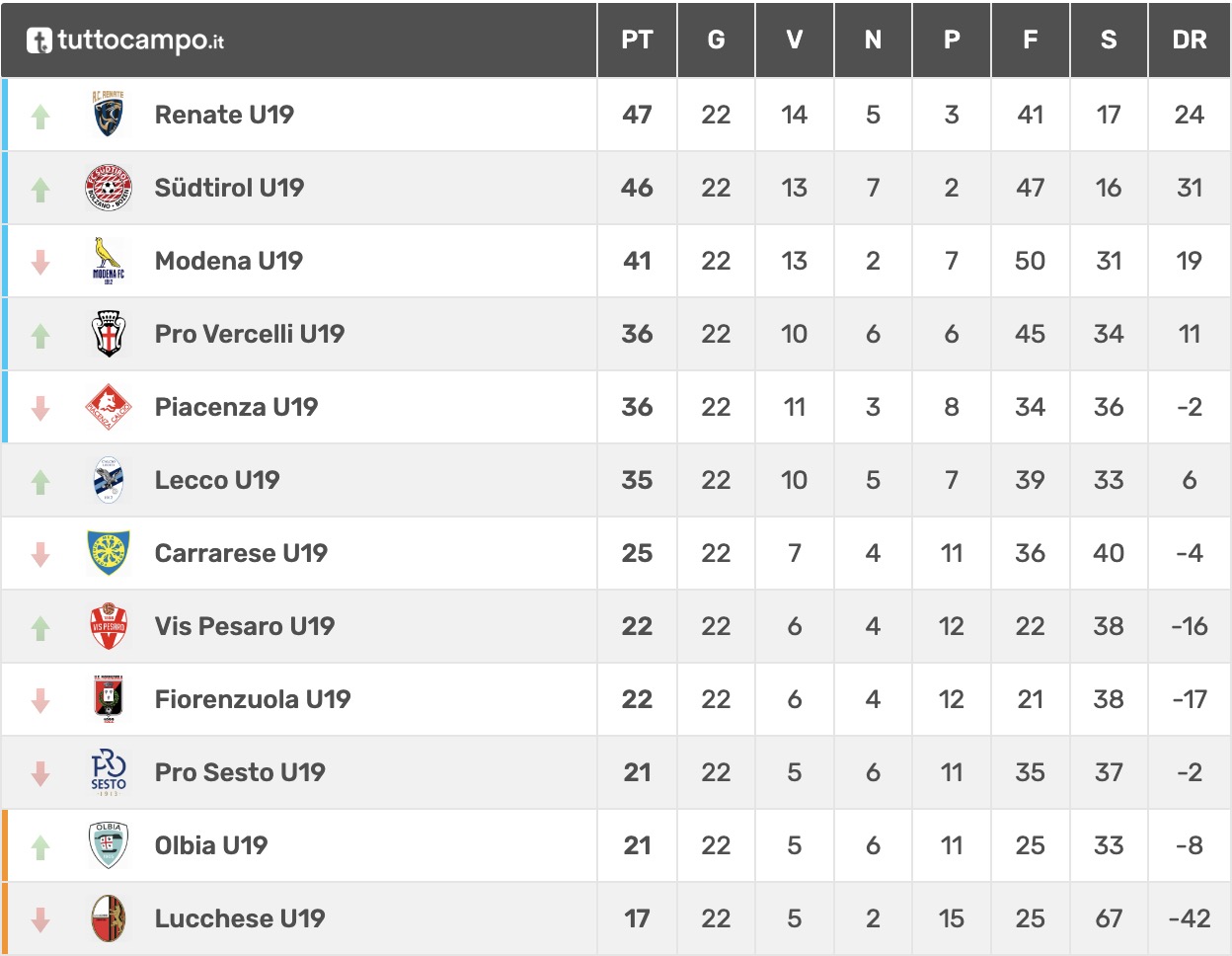 Niente da fare. Si chiude subito la stagione 2022/2023 della Primavera 3 in casa Calcio Lecco 1912: i blucelesti hanno fatto ampiamente il loro dovere a Sesto San Giovanni, servendo un poker sul tavolo di una tranquilla Pro Sesto. Un risultato roboante (1-4) che è servito a poco o nulla: compito svolto anche dalla Pro Vercelli in casa del Fiorenzuola, con l’unica rete del match che è stata sufficiente per fare bottino pieno e assicurarsi addirittura il quarto posto finale in classifica a discapito del Piacenza. Un risultato finale amaro e che non rende merito al buon campionato disputato dalla squadra di mister Roberto Mastrolonardo, tra le prime cinque per quasi tutta l’annata ma poi fortemente rallentata anche dagli infortuni agli elementi chiave; al lordo di un mercato che si aprirà tra vari mesi, la rosa potrà ripartire da un buon nucleo di 2005 e di qualche 2006 già prelevato dall’Under 17. Reti di Frattini, Cereghini, Sarpa e Piccirillo per i blucelesti, firmata da Di Fini per la squadra di Pasca che chiude con la salvezza diretta.