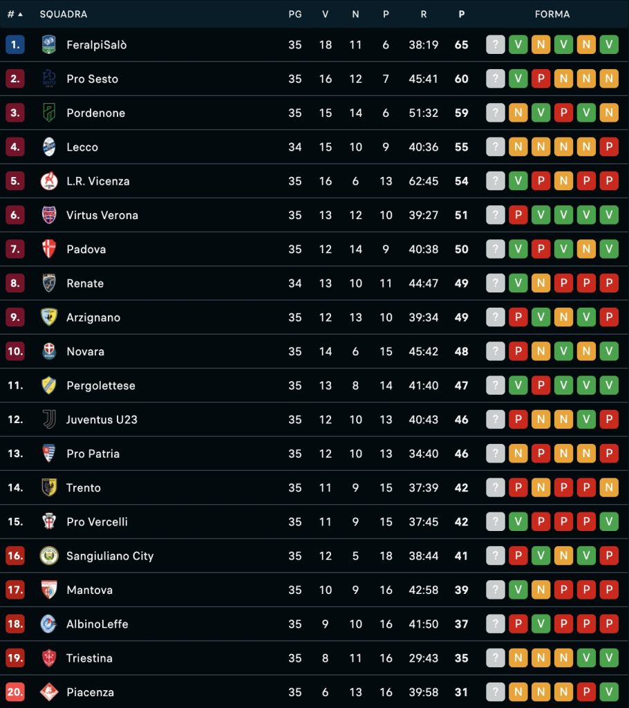 Pareggio per il Pordenone, vittorie per FeralpiSalò e Pro Sesto. Le prime nove partite del girone A di Serie C hanno già dato mezzi verdetti: i bresciani hanno un piede e mezzo in Serie B dopo anni di rincorse e proprio quando il Brescia sta rischiando seriamente il capitombolo al capitolo inferiore – e i destini potrebbero anche essere legati – i milanesi si sono riappropriati del secondo posto e i friulani devono credibilmente incassare l’amarezza del fallimento in merito al primo obiettivo stagionale, ovvero quello del ritorno in cadetteria passando dalla prima piazza. Dietro ai neroverdi, fermati (0-0) dalla rediviva Pro Patria, si è venuta a creare una vera e propria Terra di Mezzo: quattro punti di distanza dal Lecco impegnato tra poche ore a Meda contro il Renate.