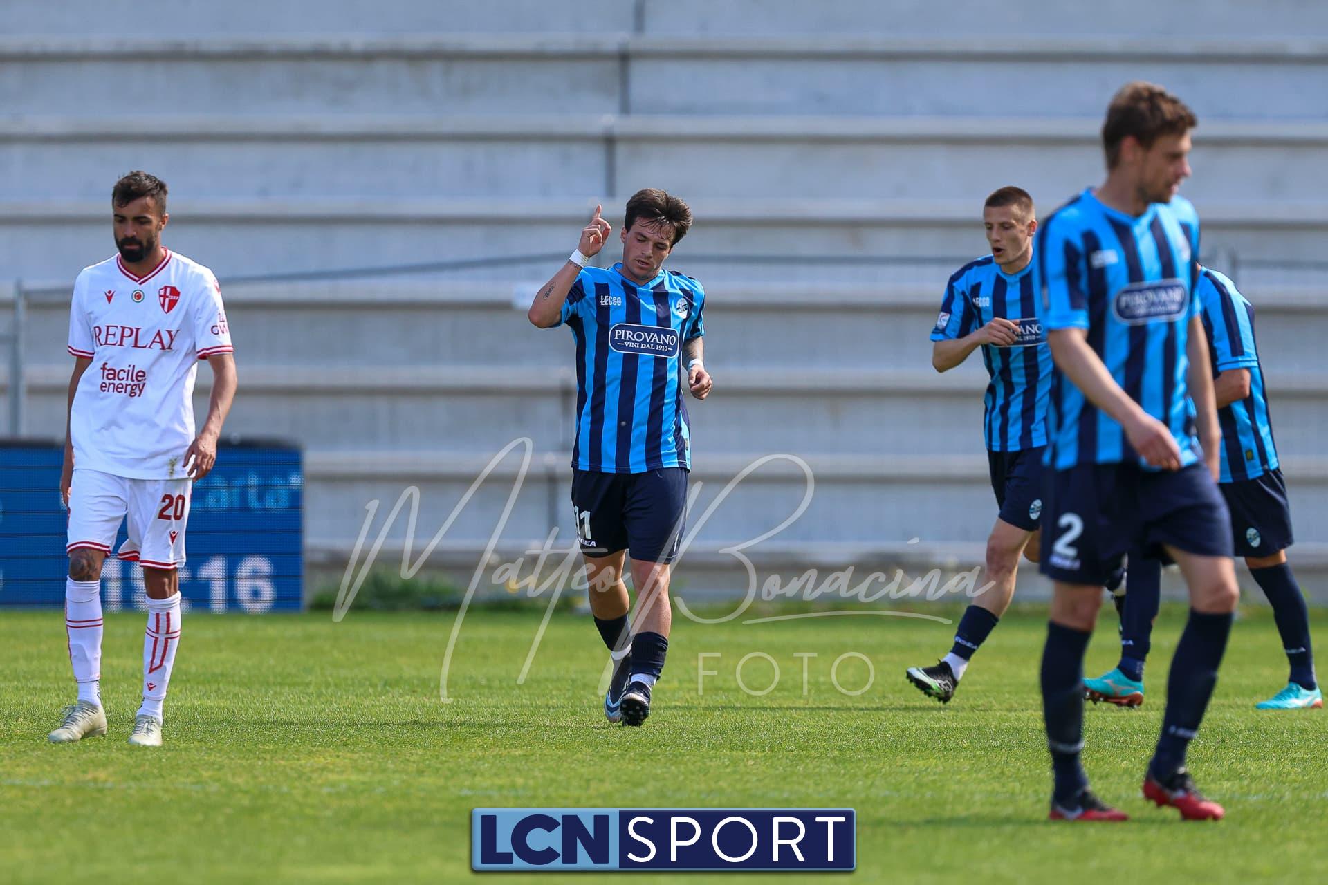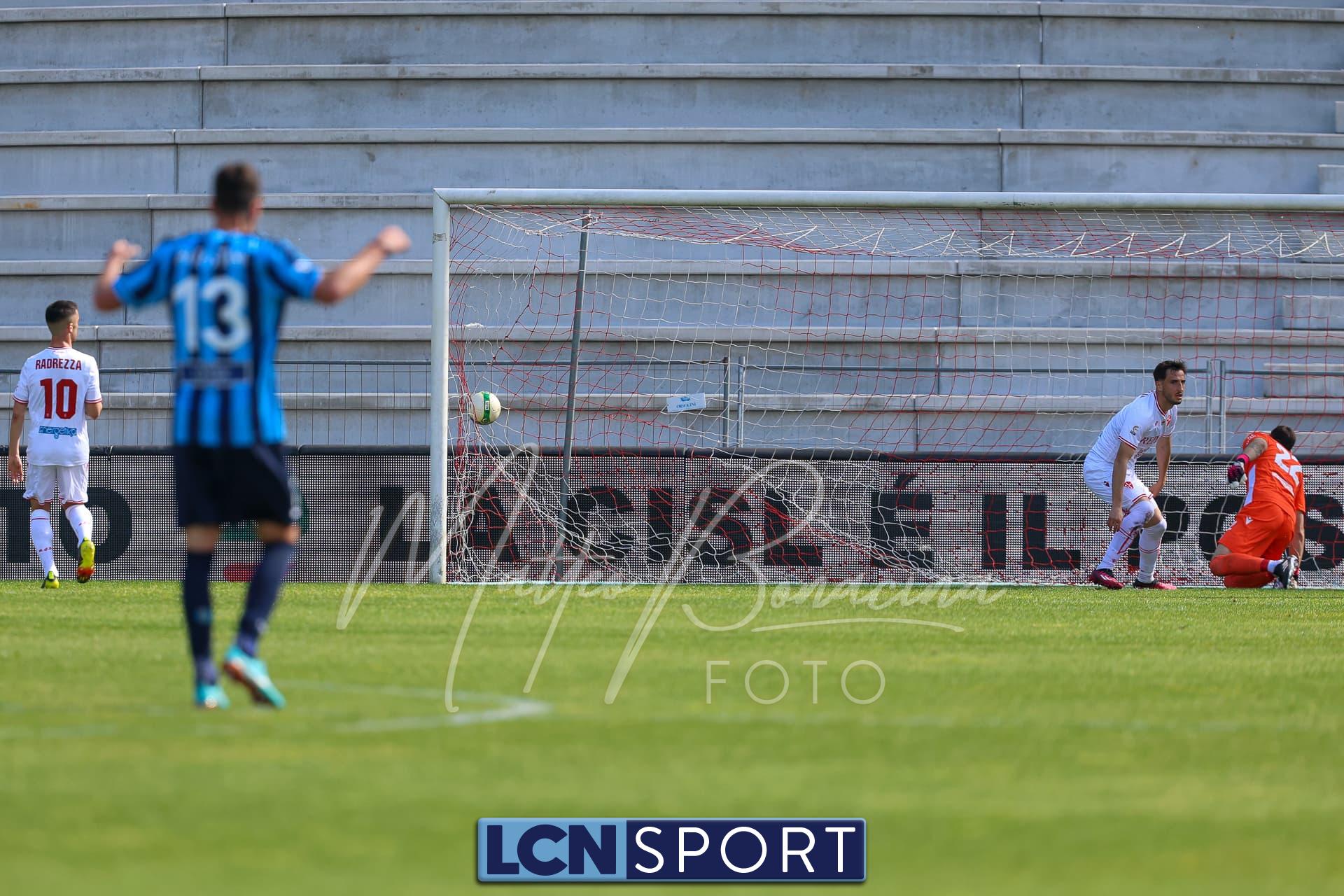 La legge del calcio colpisce al 26′: palla sul secondo palo per Giudici che calcia e trova una respinta della difesa, Mangni sul tap-in a colpo quasi sicuro centra Donnarumma. Contropiede classico dei padroni di casa che vanno fino in fondo a destra con Bortolussi, cross sul lato scoperto e colpo di testa non irresistibile di Jelenic che fa rimbalzare il pallone e beffa Melgrati in ritardo.