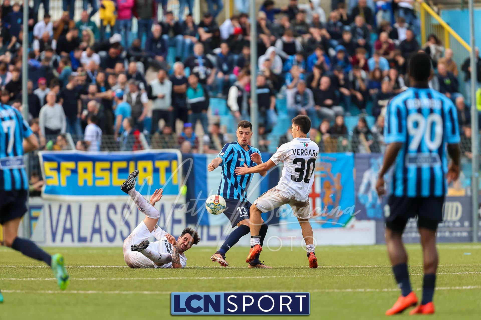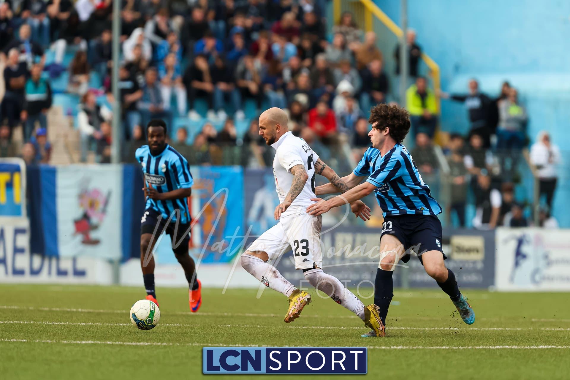 Pro Vercelli (4-2-3-1): Valentini; Iezzi, Cristini, Perrotta, Rizzo N. (dal 17′ s.t. Clemente); Calvano, Saco; Laribi, Iotti, Vergara (dal 31′ s.t. Gatto); Arrighini. (Rizzo M., Lancellotti, Vaccarezza, Corradini, Emmanuell, Rojas, Comi, Costanzo, Gheza, Macanthony, Guindo, Contaldo). All. Massimo Gardano.