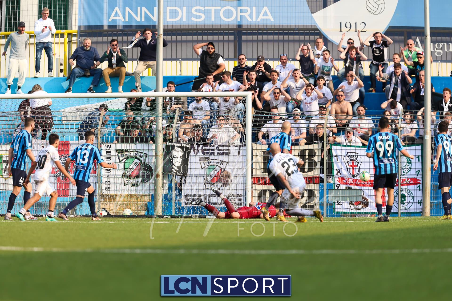 Al 48′ il primo in porta: palla vagante al limite dell’area che Calvano calcia benissimo, tiro teso su cui Melgrati si tuffa a sinistra mettendo in angolo.