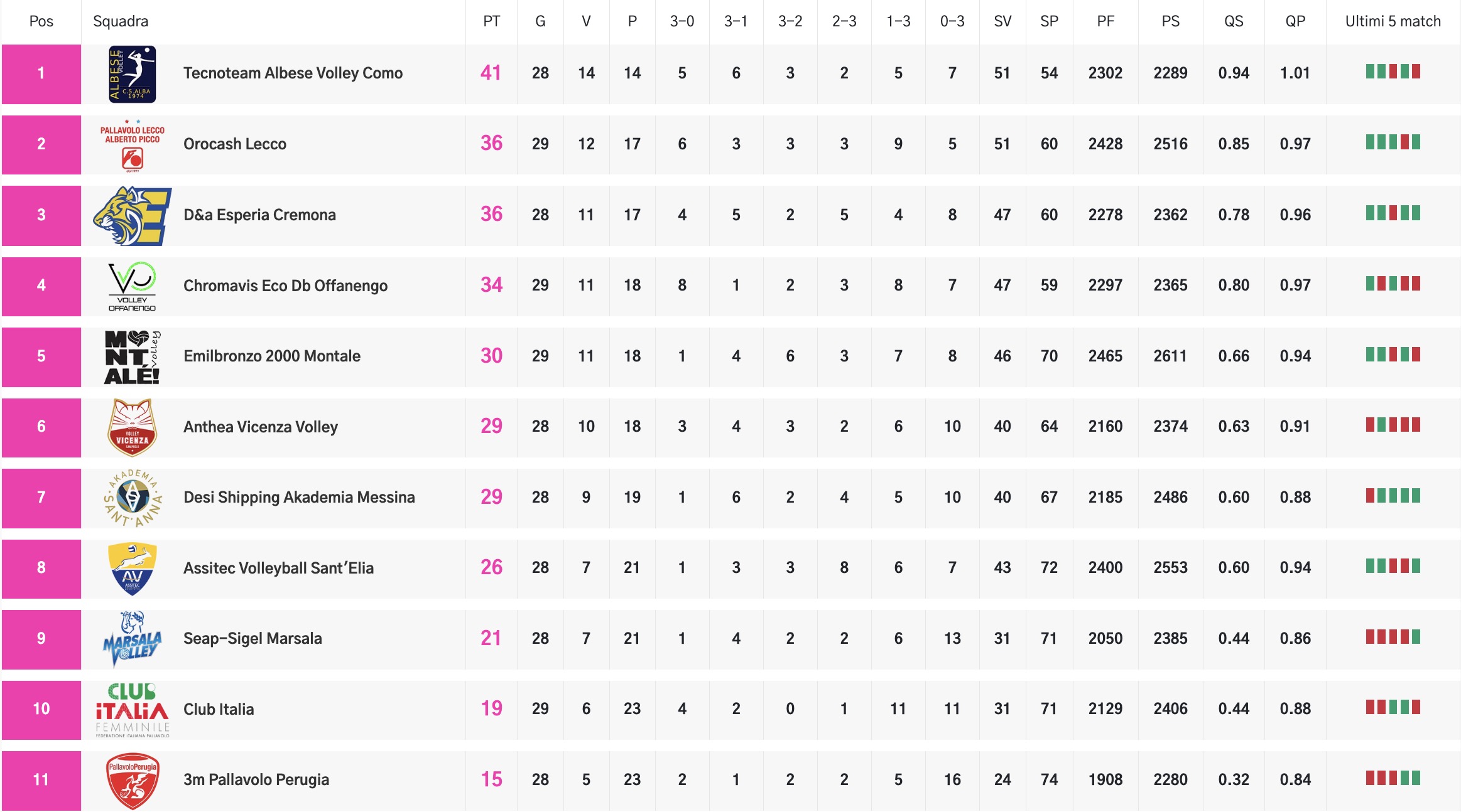 «Ci mancano poche giornate, ma sono partite davvero importanti. In poche settimane ci giocheremo l’intero campionato. Sarà fondamentale essere efficaci come domenica contro il Vicenza. Saremo molto concentrate per ottenere il risultato», ha evidenziato la palleggiatrice Rebecca Rimoldi. «Lecco è una buona squadra – ha analizzato invece Federica Vittorio, libero dell’Assitec Volleyball -, sviluppa un bel gioco, è organizzata in ogni fondamentale e sbaglia poco, del resto attualmente occupa la seconda posizione in classifica. Di certo non sarà una trasferta facile, ma noi siamo determinate a fare bene. Sappiamo che tutte le partite che restano sono fondamentali per la lotta alla salvezza ed è importante portare a ogni partita punti a casa. Loro all’andata sono state più brave di noi, battendoci in cinque set, quindi mi aspetto un’altra dura battaglia dove noi daremo tutto, consapevoli di non poter tornare da Lecco a mani vuote».