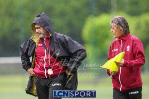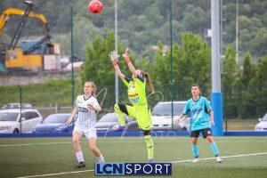 The Last Dance in grande stile per Elena Cascarano. La centrocampista del Lecco Women ha chiuso una carriera lunga e piena di successi con la bella vittoria (3-1) sul 3Team Brescia, battuto nettamente su un campo 1 del Bione colpito anche da una violenta grandinata. La classe 1989 è stata salutata con un tris, la vittoria contro un’avversaria di livello, un bello striscione e anche una passerella d’onore nei minuti finali della partita: un bel modo per congedarsi dal calcio giocato. Per quanto riguarda la partita, le blucelesti la sbloccano già al 7′ con il bel tiro da fuori di capitan Galbusera; al 29′ le bresciane vengono fermate dalla traversa su punizione, poi Manzoni si stende bene sulla sua sinistra e devìa una conclusione dal limite dell’area. Premono le ospiti al 34′ prima Manzoni mura Capelloni, poi Marchesi ribatte di testa sulla linea la seconda conclusione dell’attaccante, che al 36′ non si fa pregare e scarica un potente diagonale che va a morire vicino alla faccia interna del palo alla destra del portiere. Preso il gol, le blucelesti riprendono a giocare e dominare dal punto di vista territoriale: dai e dai, Dell’Oro crossa dalla destra per Bruno, che al 45′ svetta al limite dell’area piccola e batte imparabilmente di testa sotto al diluvio.
