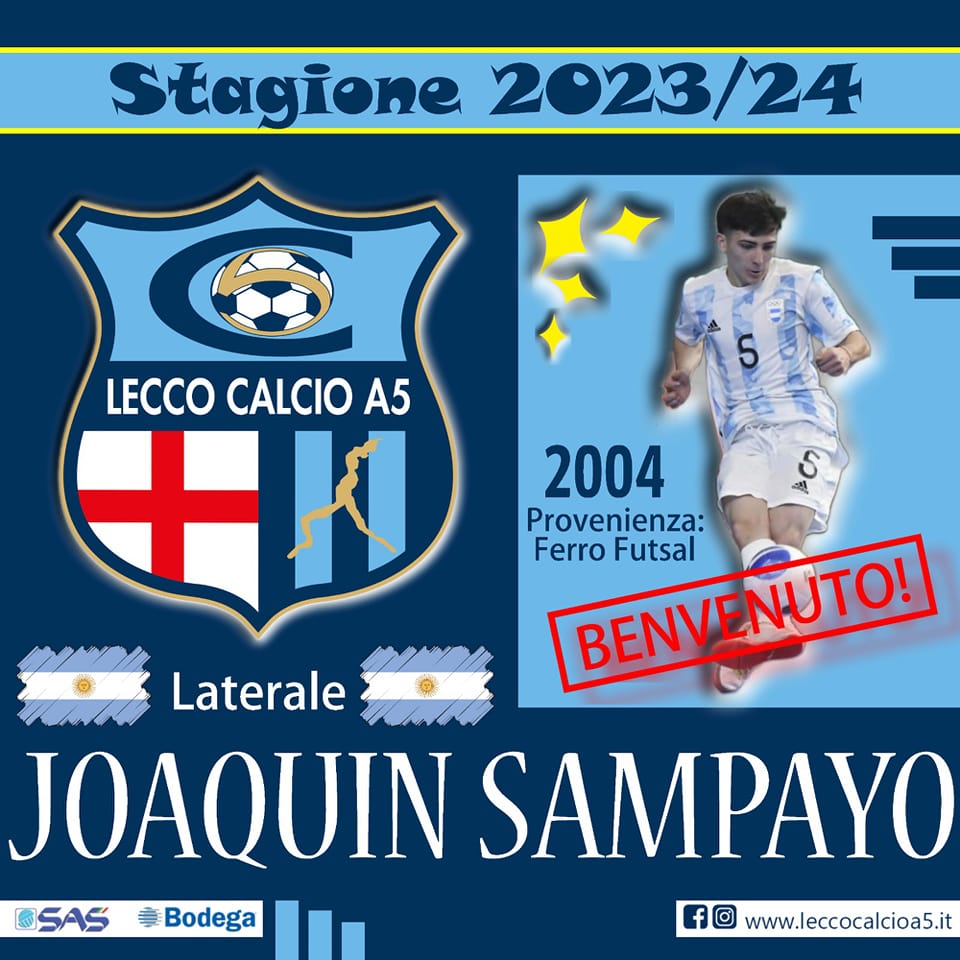 Colpo sul mercato per il Lecco C5 del confermato Pablo Hernán Parrilla. Dopo aver ottenuto la promozione in Serie A2 Elite e aver disputato i play off per la Serie A1, la compagine bluceleste si è buttata sul rafforzamento della rosa in vista della stagione 2023/2024, inserendo Matteo Dei Cas nell’organigramma. Il primo colpo è quello di Joaquin Sampayo, giovane laterale argentino classe 2004 di Buenos Aires. Cresciuto nelle giovanili a 11 del Velez, salutato a 10 anni per passare al Tigre, ha iniziato dopo due anni dopo la sua avventura nel futsal con i colori del Catedral. Nel 2019 si è trasferito al Ferro Futsal, con cui è arrivato a vestire la maglia della nazionale argentina Under 17. Destro dotato di grande qualità tecnica, Sampayo sarà uno dei pilastri dell’ambiziosa formazione Under 19 bluceleste, dando all’occorrenza il suo contributo anche in prima squadra.