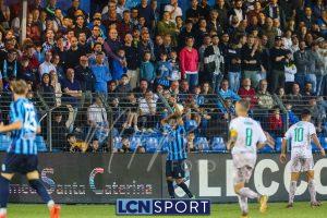 Melgrati al 65′ compie un autentico capolavoro sul tiro forte all’angolino di Dubickas: parata in tuffo prima di mano e poi di piede; sul rimpallo conclusione alta da posizione favorevole. Girelli ci prova dai 25 metri, abbastanza facile per Festa. Dentro Mangni per Pinzauti. Al 75′ tentativo ancora di Zammarini, al volo col destro da fuori area: alto non di molto. Sgasata di Buso da destra al 77′, tiro-cross direttamente fra le braccia del portiere. Poco dopo lo stesso Buso cerca di prendere i due centrali in velocità, ma sbaglia il tocco. Contropiede del Lecco, tre contro tre, Zuccon prova di sinistro ma non inquadra la porta.