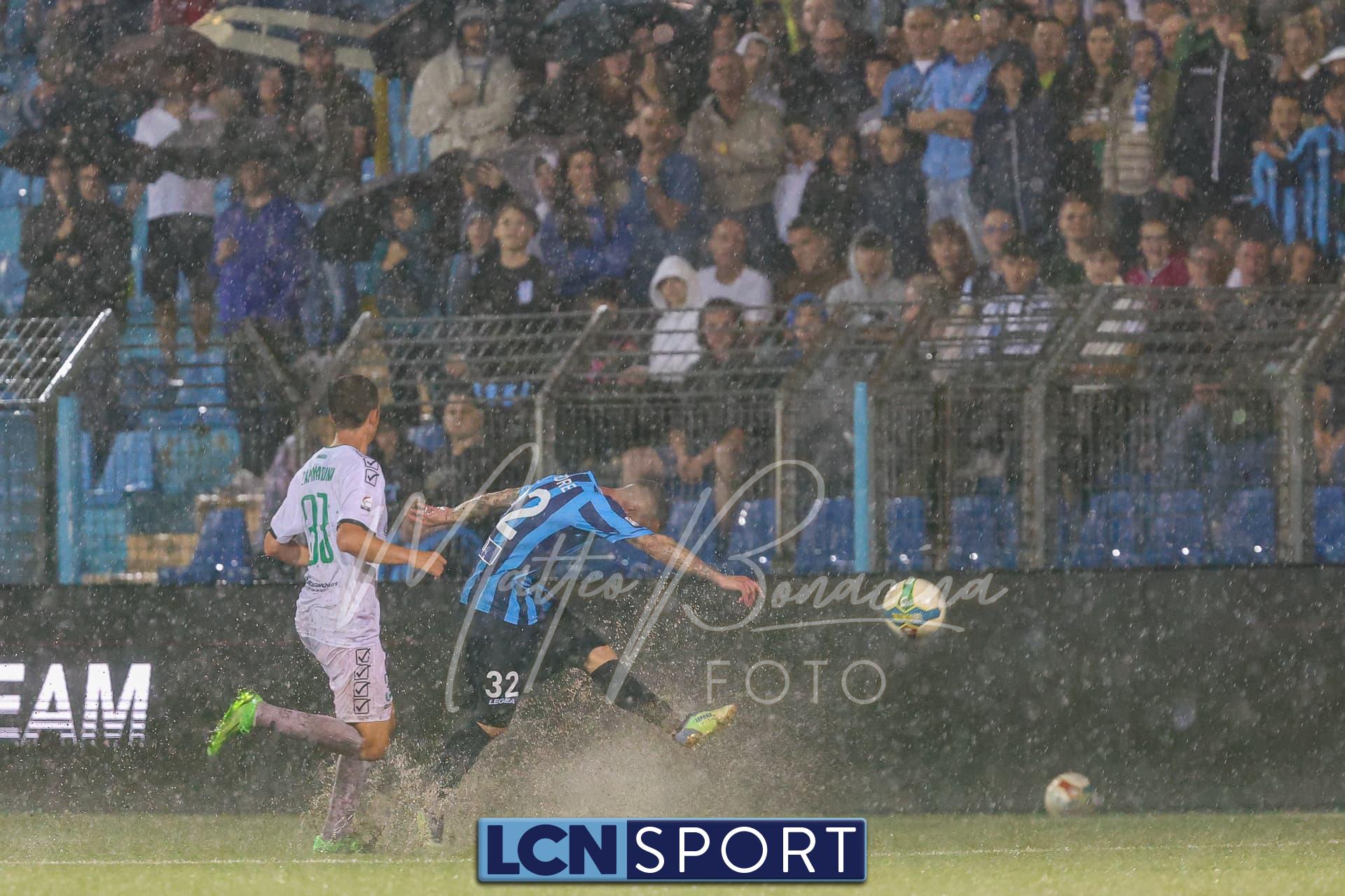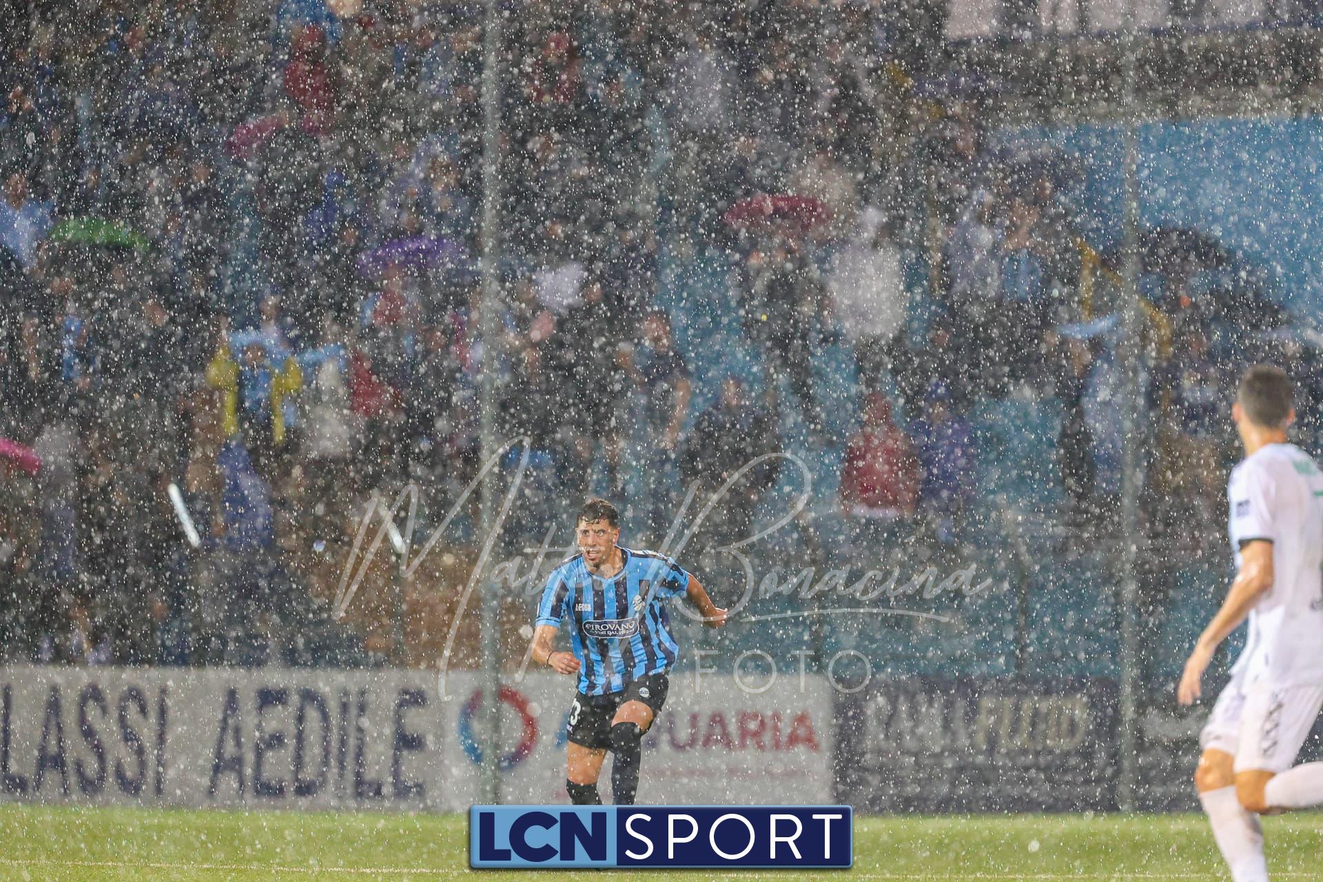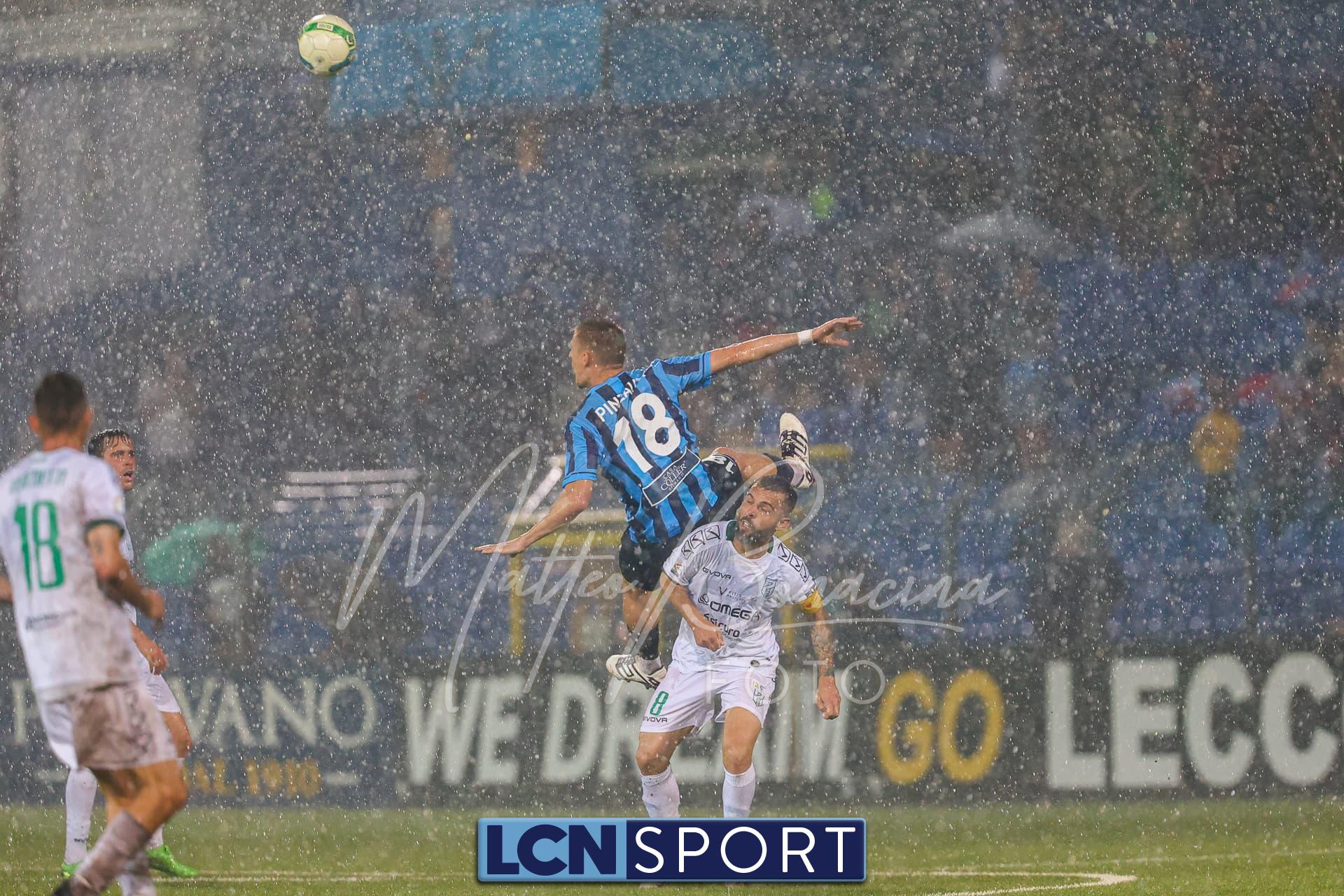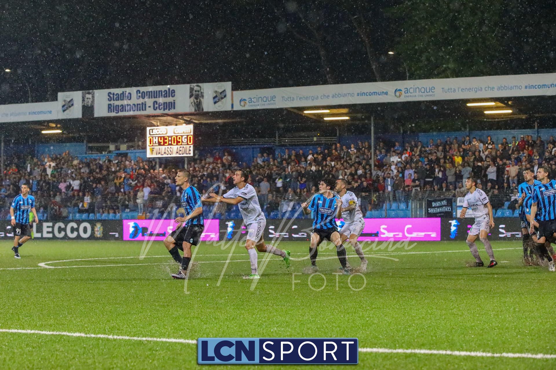 Un finale amaro. Il Lecco gioca alla pari del Pordenone per 35 minuti, sotto il diluvio davanti a 3.700 spettatori, poi la partita diventa più pallanuoto che calcio. L’arbitro fa terminare un primo tempo che andrebbe interrotto prima, poi (dopo una sosta di quasi mezz’ora nell’intervallo) dirige una ripresa brutta e complicata, decisa da un rigore discutibile all’85’. E concede un recupero di soli 5 minuti nonostante il gioco sia interrotto per quasi altrettanti dopo l’invasione di campo di un indemoniato Di Nunno.