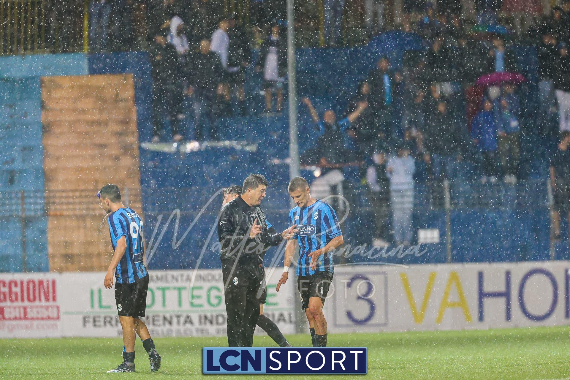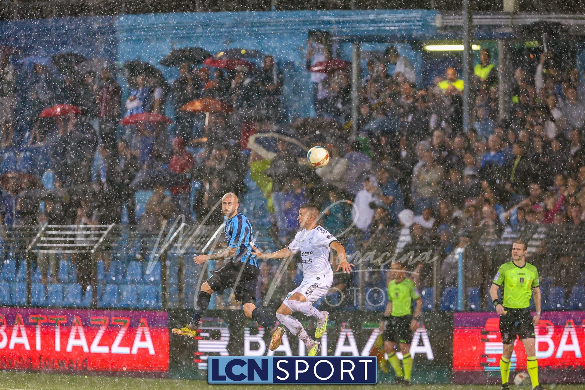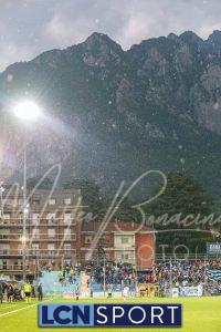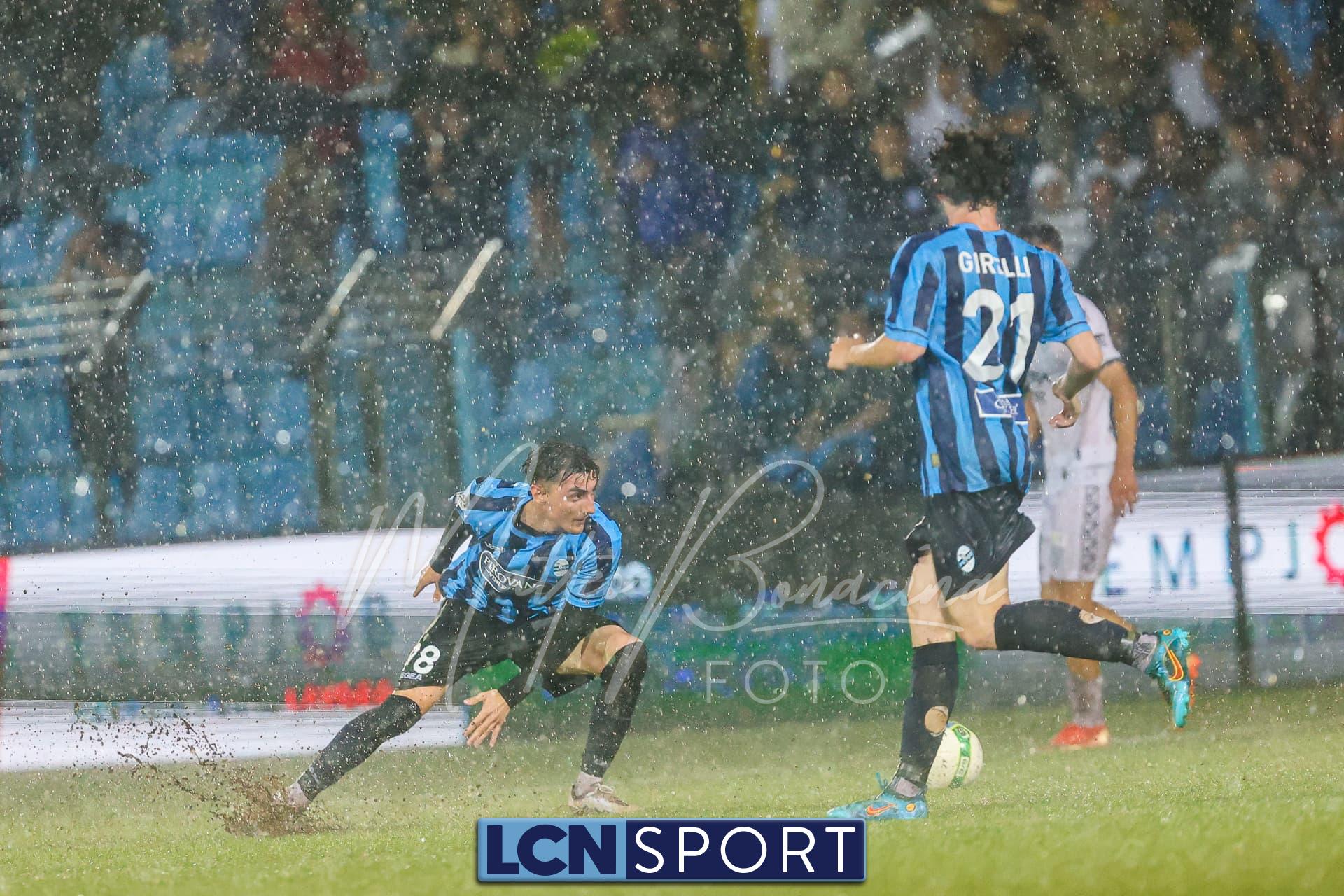 Un finale amaro. Il Lecco gioca alla pari del Pordenone per 35 minuti, sotto il diluvio davanti a 3.700 spettatori, poi la partita diventa più pallanuoto che calcio. L’arbitro fa terminare un primo tempo che andrebbe interrotto prima, poi (dopo una sosta di quasi mezz’ora nell’intervallo) dirige una ripresa brutta e complicata, decisa da un rigore discutibile all’85’. E concede un recupero di soli 5 minuti nonostante il gioco sia interrotto per quasi altrettanti dopo l’invasione di campo di un indemoniato Di Nunno.