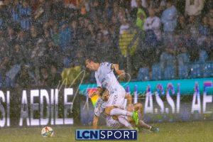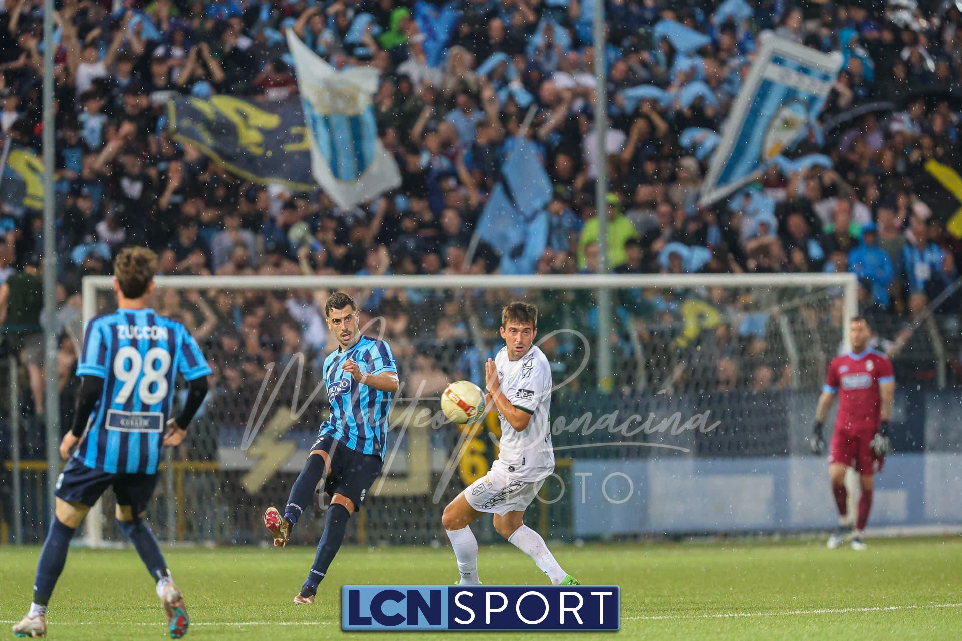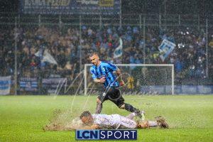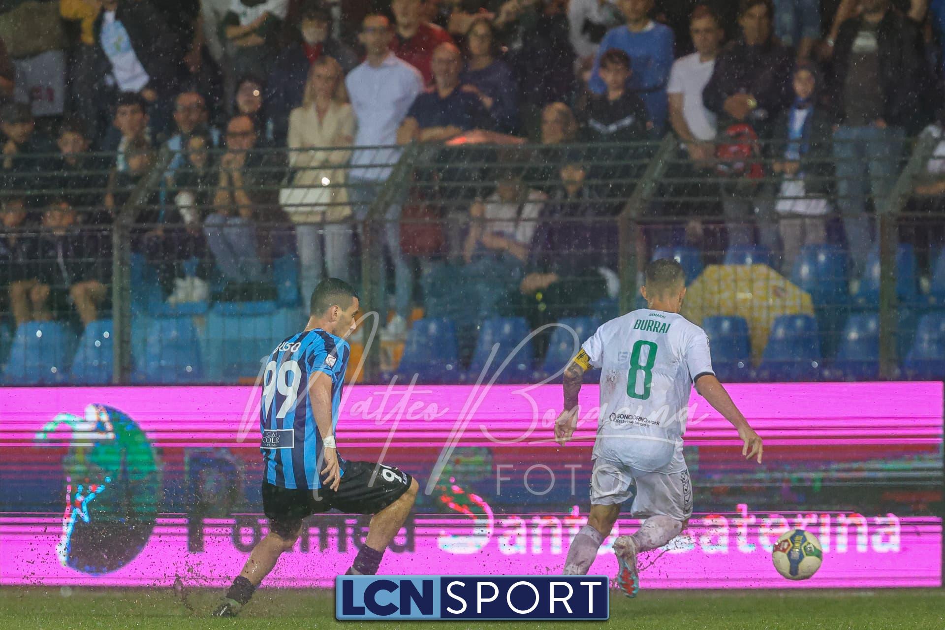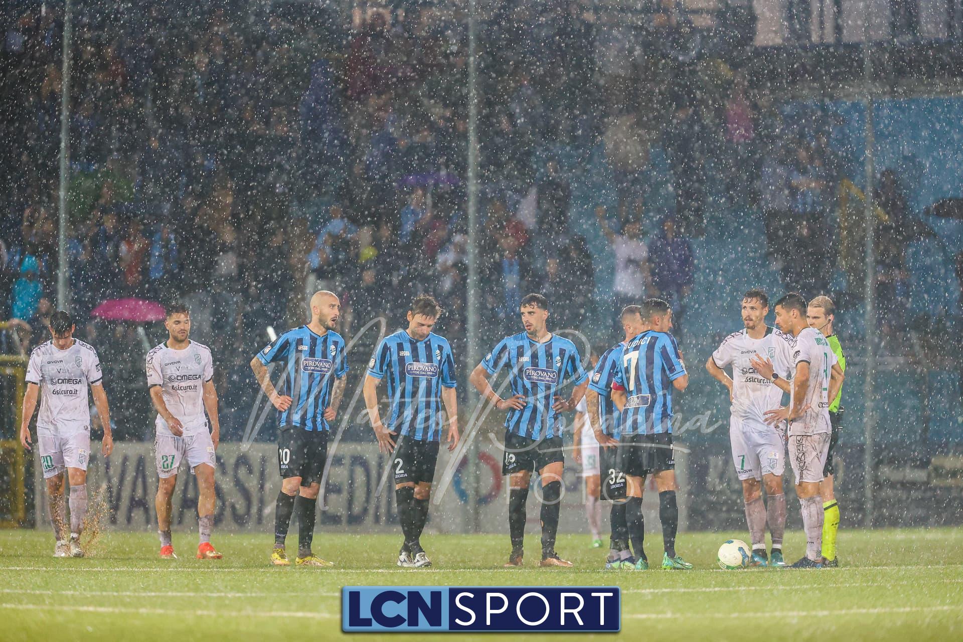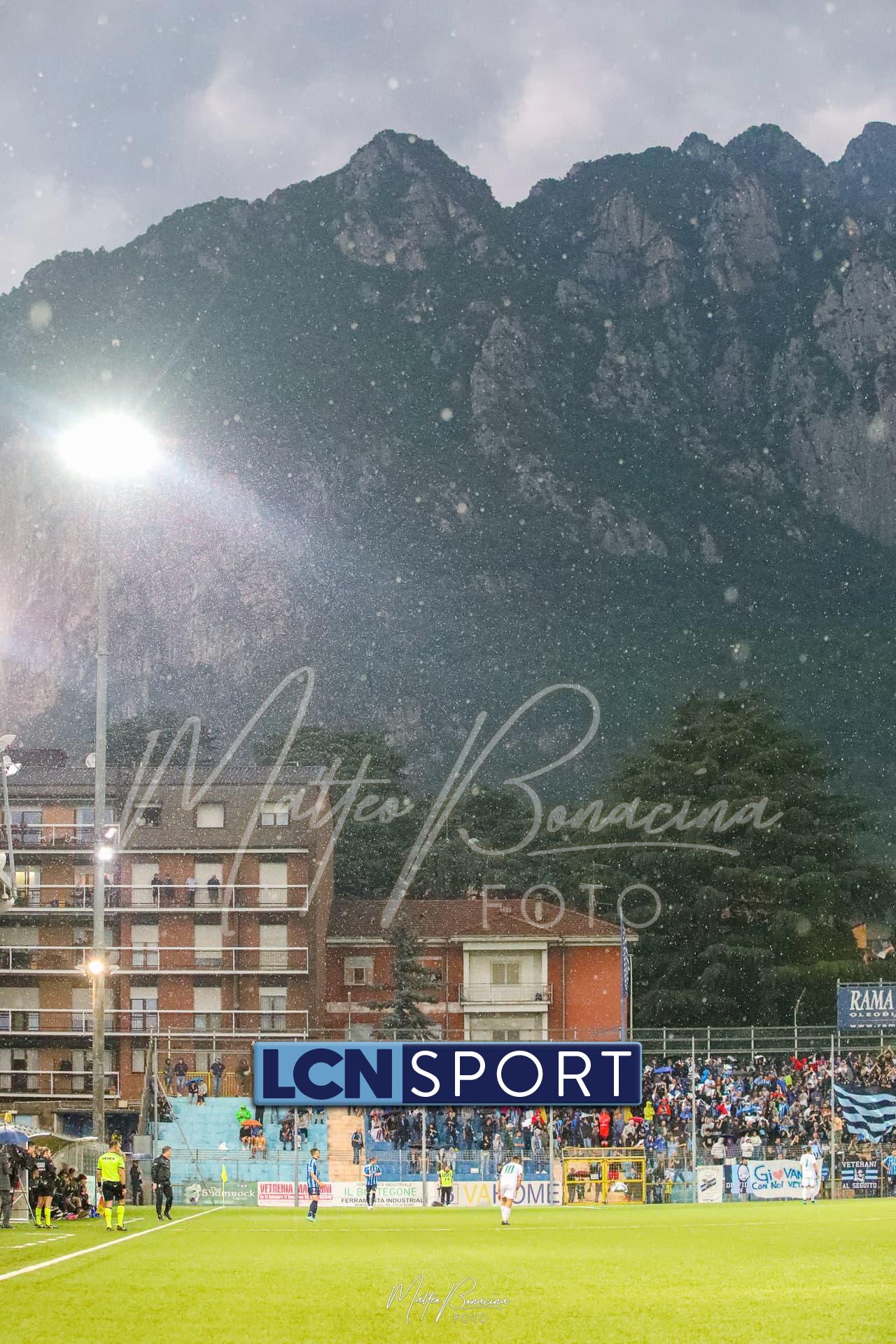 Un finale amaro. Il Lecco gioca alla pari del Pordenone per 35 minuti, sotto il diluvio davanti a 3.700 spettatori, poi la partita diventa più pallanuoto che calcio. L’arbitro fa terminare un primo tempo che andrebbe interrotto prima, poi (dopo una sosta di quasi mezz’ora nell’intervallo) dirige una ripresa brutta e complicata, decisa da un rigore discutibile all’85’. E concede un recupero di soli 5 minuti nonostante il gioco sia interrotto per quasi altrettanti dopo l’invasione di campo di un indemoniato Di Nunno.