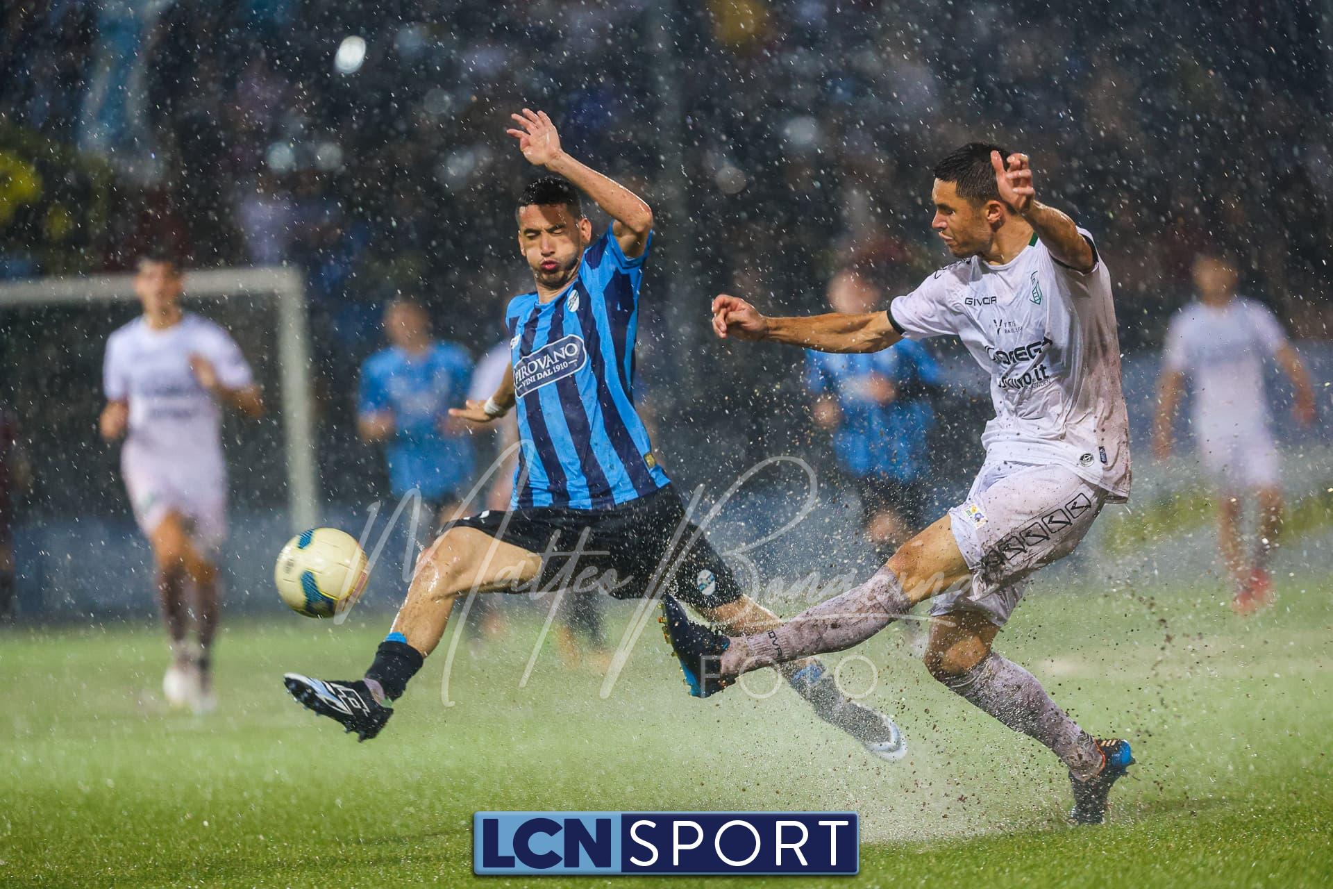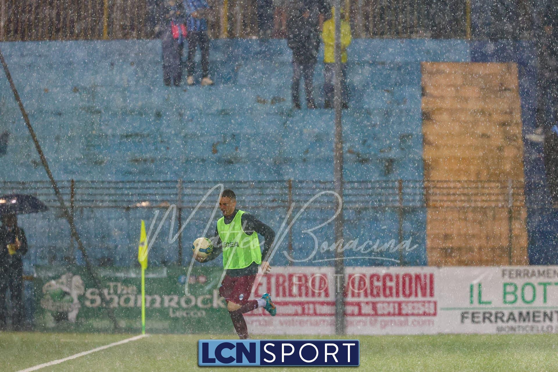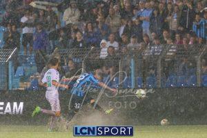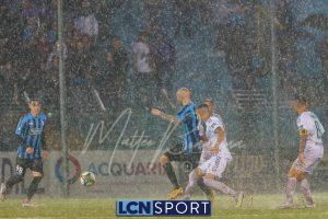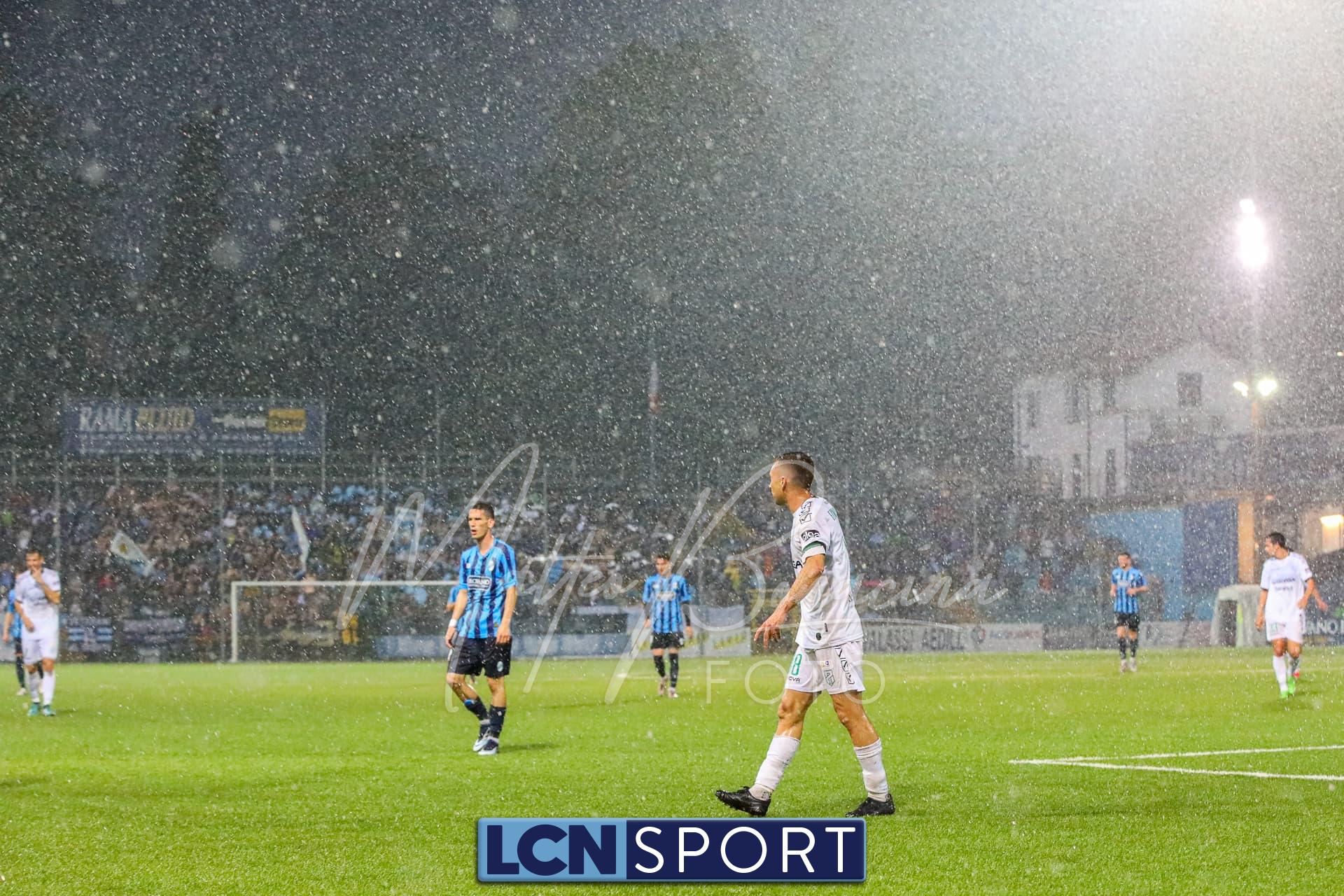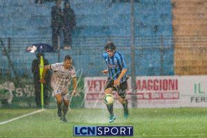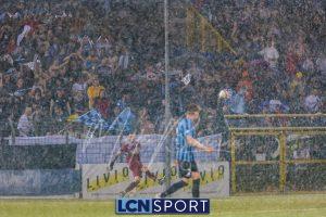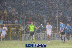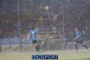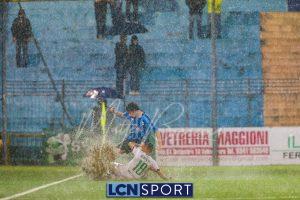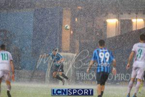 Pericolo gigantesco al 24′ con la conclusione di Zammarini dal limite dell’area piccola, rasoterra a giro che fa la barba al palo alla sinistra di Melgrati. Risponde un ispirato Giudici che si accentra e calcia col mancino, di potenza: alto. Al 40′ ci si ferma per valutare il campo, ormai quasi impraticabile. Il gioco riprende.