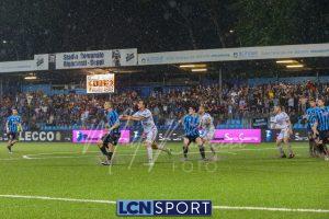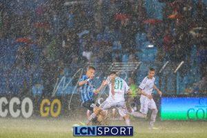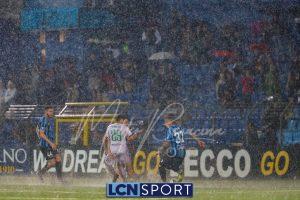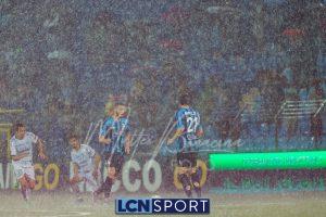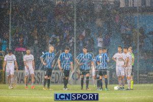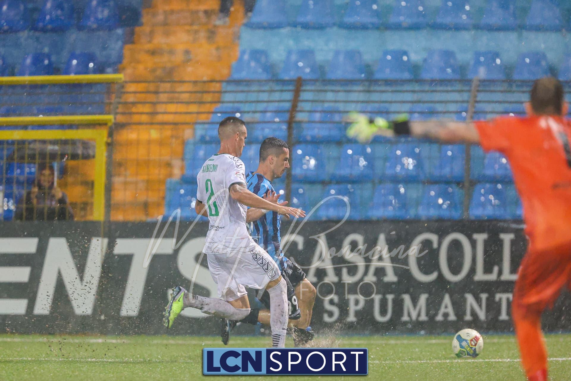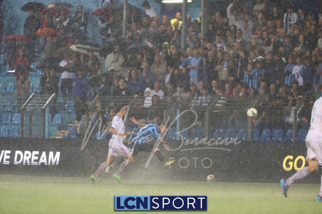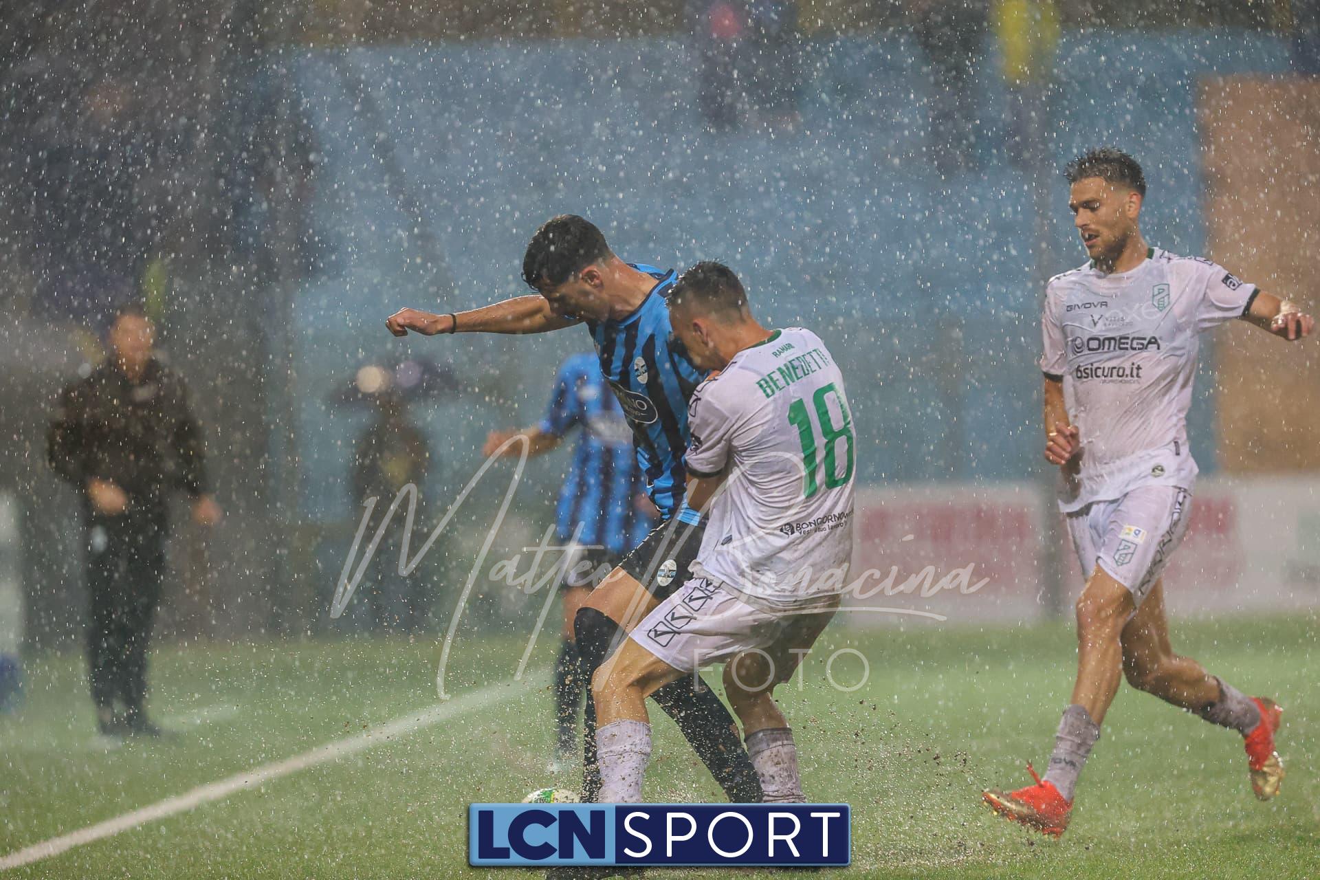 Pericolo gigantesco al 24′ con la conclusione di Zammarini dal limite dell’area piccola, rasoterra a giro che fa la barba al palo alla sinistra di Melgrati. Risponde un ispirato Giudici che si accentra e calcia col mancino, di potenza: alto. Al 40′ ci si ferma per valutare il campo, ormai quasi impraticabile. Il gioco riprende.