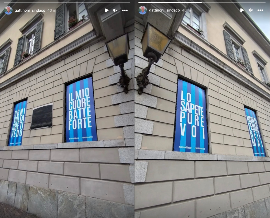 Che sia scoppiata la Lecco Mania è cosa decisamente nota. Che questa contagi anche il Comune di Lecco, che rispetto alla principale squadra del territorio ha spesso avuto un atteggiamento puramente istituzionale, è abbastanza sintomatico di come la macchia bluceleste si sia allargata a vista d’occhio. Martedì mattina all’esterno di Palazzo Bovara sono stati affissi dei manifesti blucelesti che recitano il coro diventato il tormentone di questa estate caldissima («Ogni volta che ti vedo/Il mio cuore batte forte/Lo sapete pure voi/Non ci fermerete vai»), ma già lunedì sera il presidente del Consiglio comunale Roberto Nigriello ha rivolto una comunicazione durante l’assise condivisa con Corrado Valsecchi, capogruppo di Appello per Lecco. Entrambi erano presenti a Cesena per la sfida che ha regalato la finale con il Foggia.