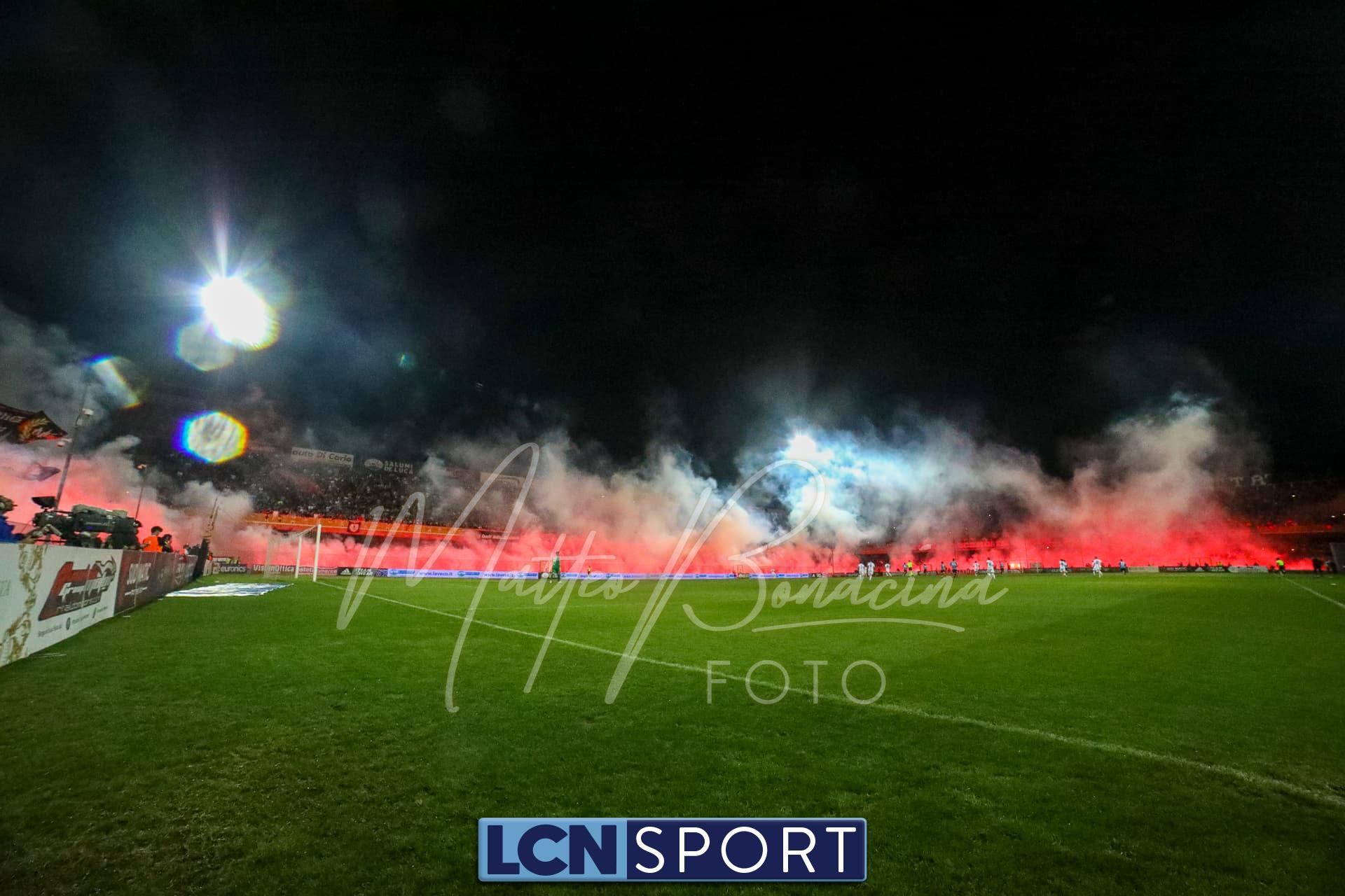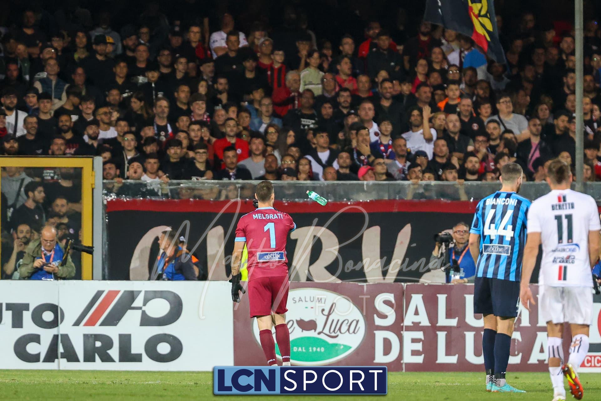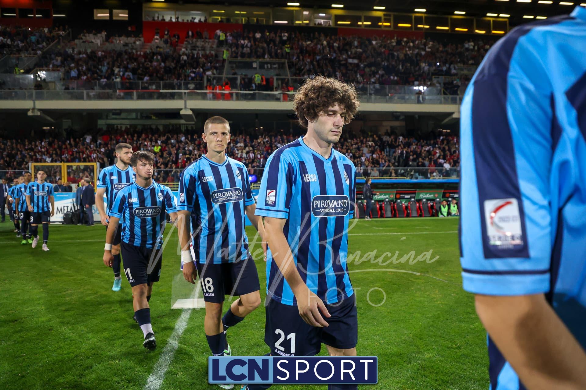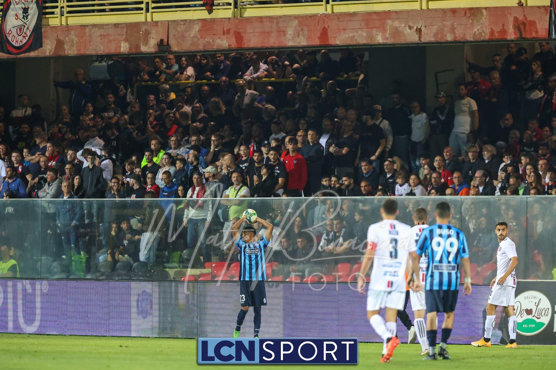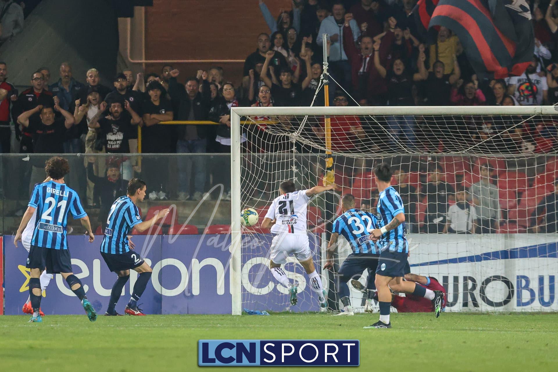 Avvio di partita nella nebbia dei fumogeni, l’arbitro è costretto a sospendere il gioco già dopo un minuto e mezzo. Cross insidioso di Costa su cui Frigerio non arriva, ma Melgrati è tratto in inganno e deve smanacciare in angolo. Dal corner, al 7′, arriva il gol del vantaggio rossonero con lo stacco imperioso di Leo, su cui Melgrati è miracoloso, ma il rimpallo sullo stesso difensore dei pugliesi si insacca (il controllo del Var convalida il gol).