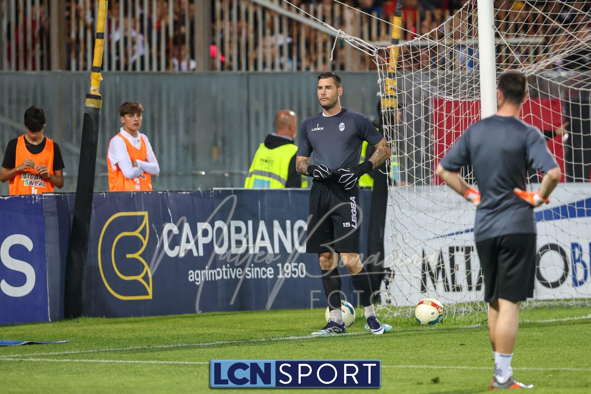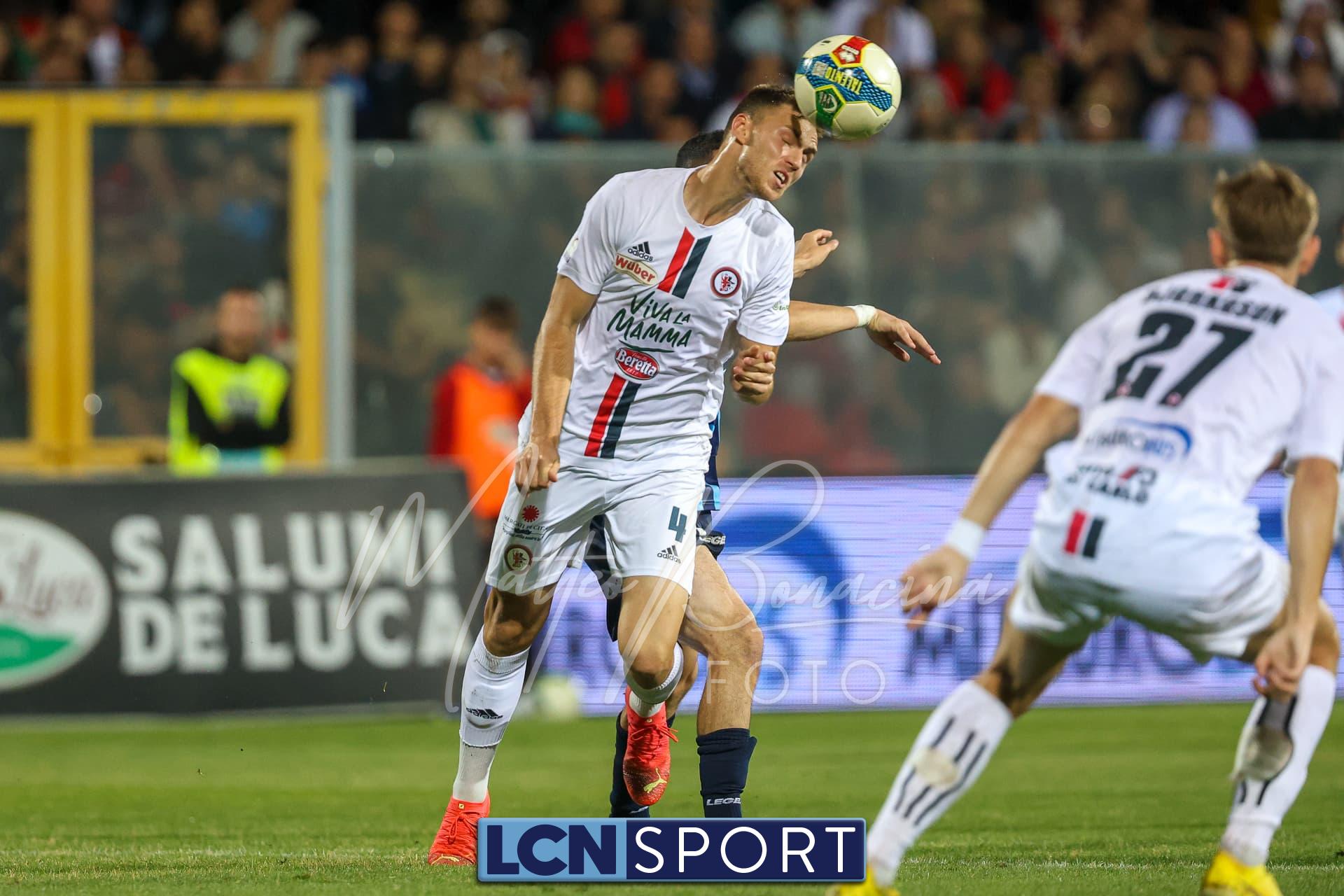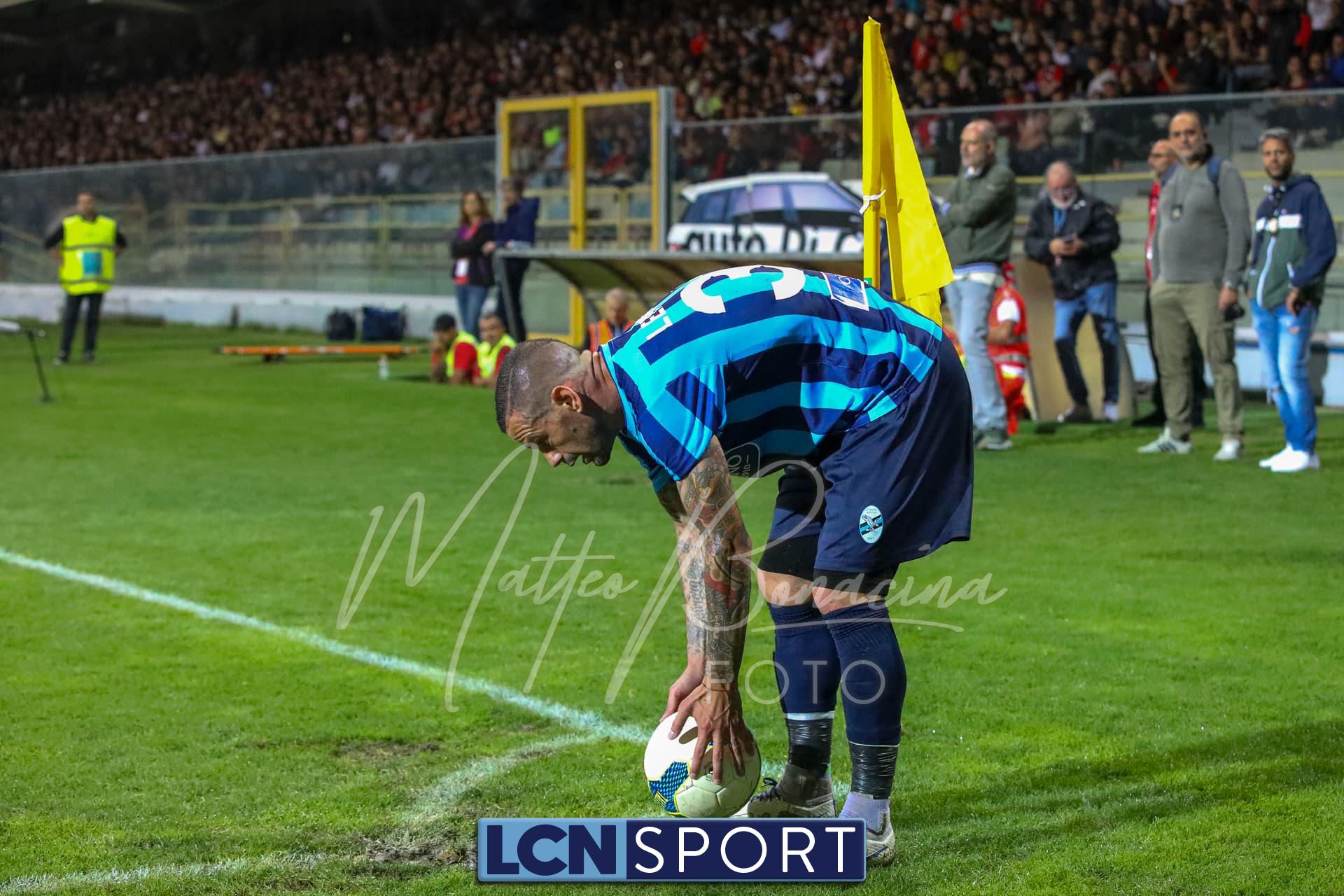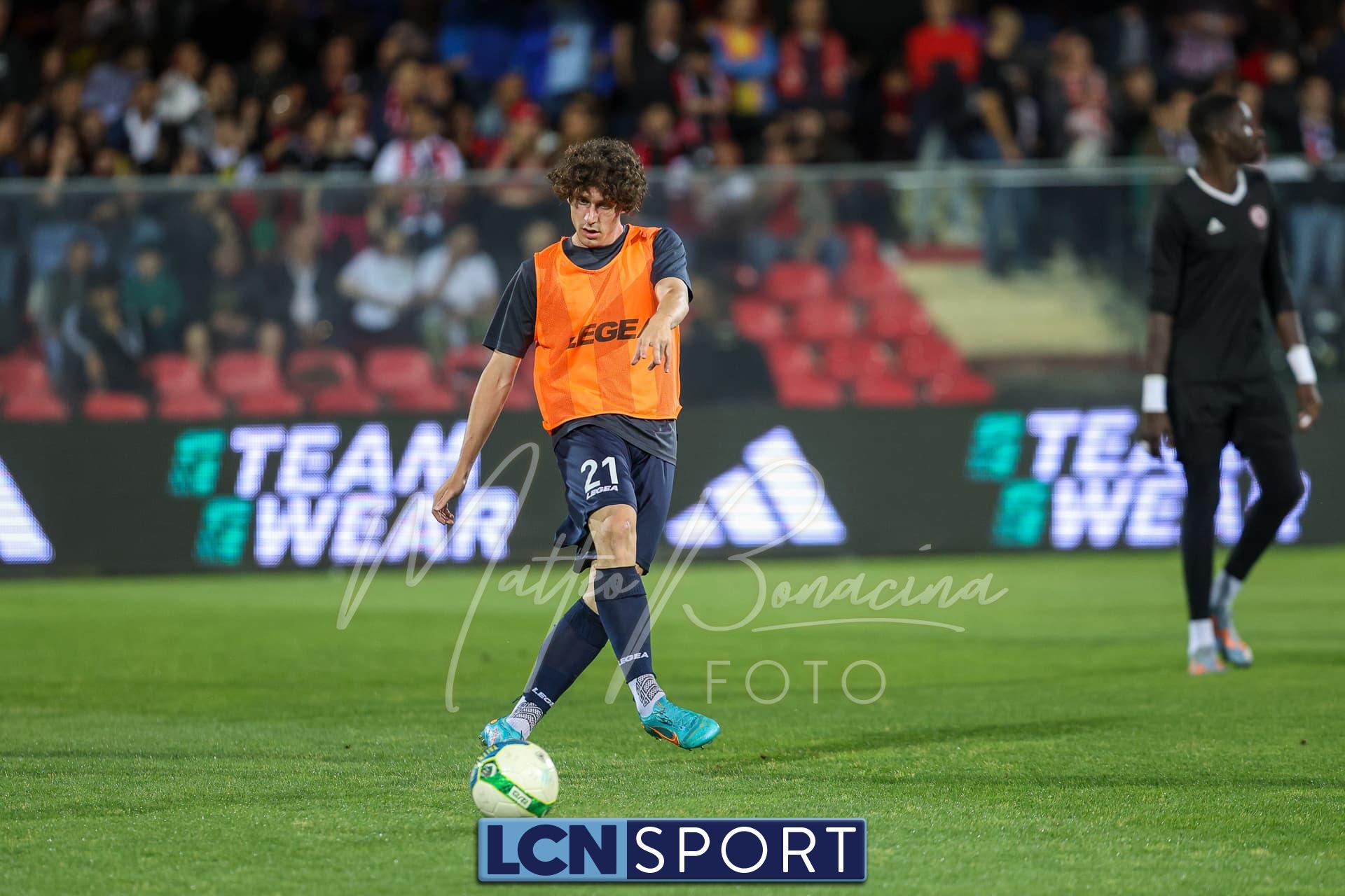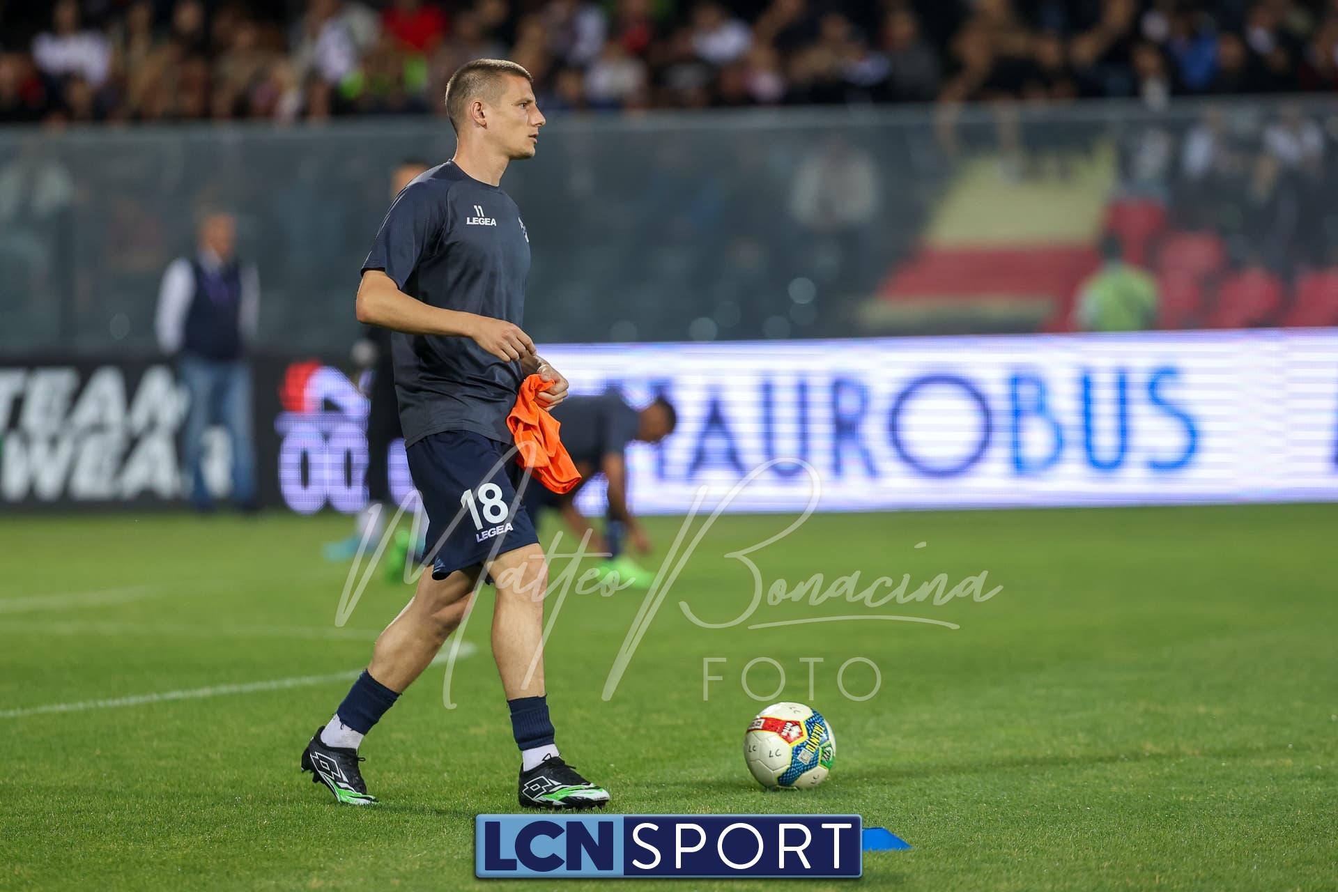 Avvio di partita nella nebbia dei fumogeni, l’arbitro è costretto a sospendere il gioco già dopo un minuto e mezzo. Cross insidioso di Costa su cui Frigerio non arriva, ma Melgrati è tratto in inganno e deve smanacciare in angolo. Dal corner, al 7′, arriva il gol del vantaggio rossonero con lo stacco imperioso di Leo, su cui Melgrati è miracoloso, ma il rimpallo sullo stesso difensore dei pugliesi si insacca (il controllo del Var convalida il gol).