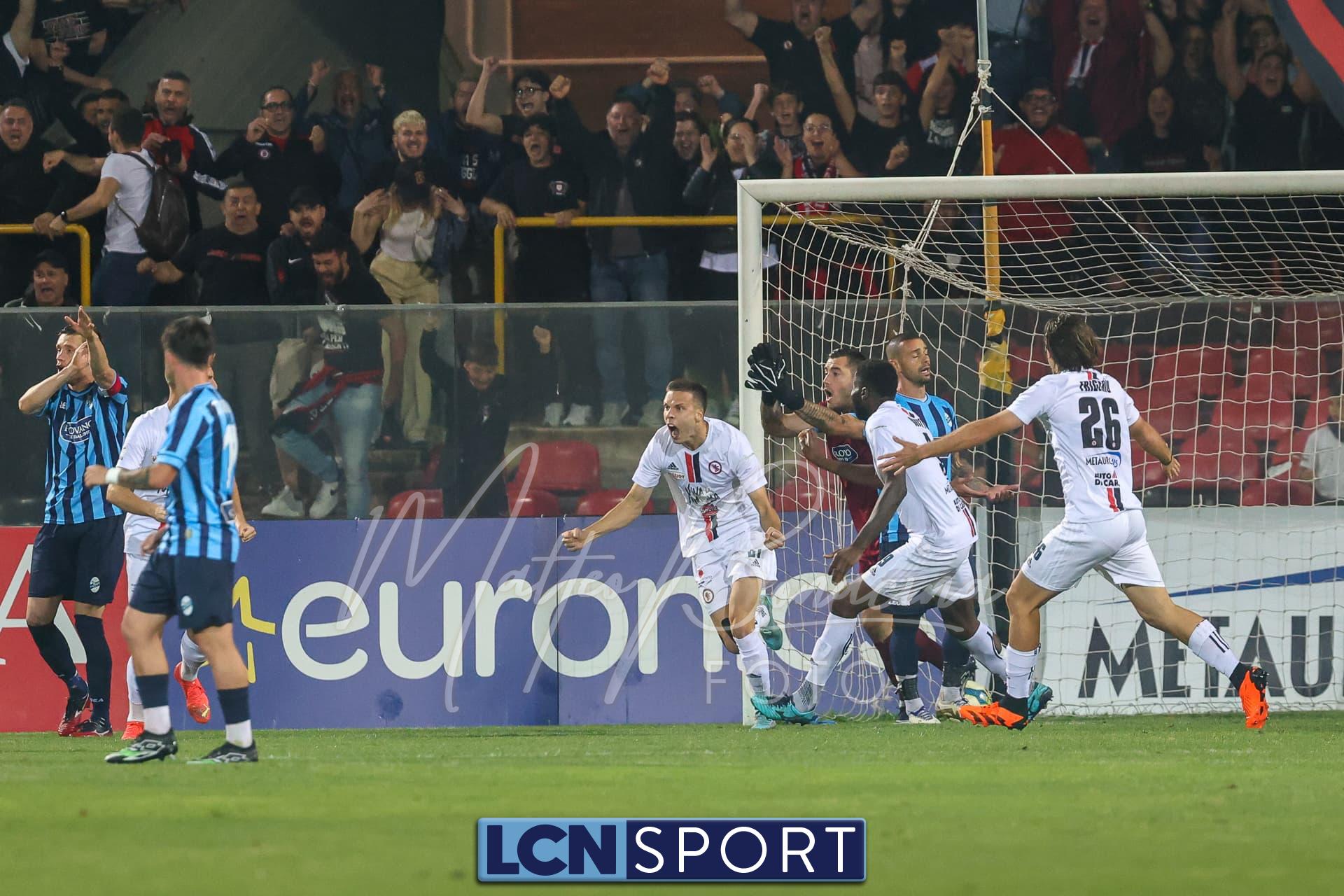 Minuto 70: palla da sinistra per l’immancabile Ogusenye che stacca bene e la mette a lato non di moltissimo. Al 79′ sinistro di Petermann dalla distanza, fuori misura. Punizione di Lepore all’86’ dopo fallo su Bunino, magistrale! Battuto Dalmasso, è 2-1 per il Lecco.