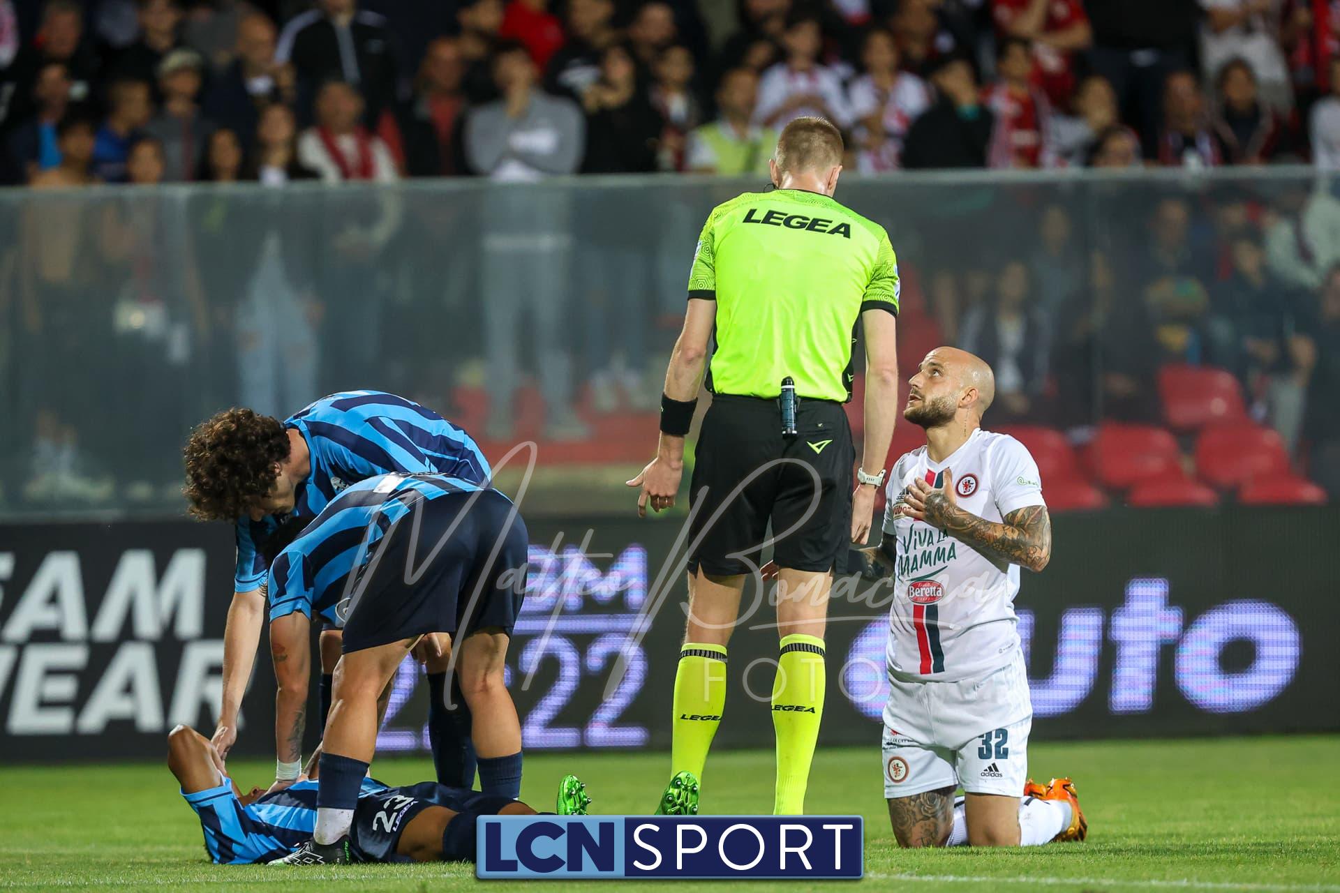 Davanti a 13mila spettatori abbondanti il Lecco compie un altro capolavoro, forse il più grande di questi playoff: espugnato lo Zaccheria, stadio caldo e “infernale”, per un vantaggio che potrebbe rivelarsi decisivo nella corsa alla Serie B. Foschi sceglie di dare fiducia a Tordini tra le linee con il 3-4-1-2 dal primo minuto, dovendo rinunciare a Battistini e Giudici ma ritrovando Galli.