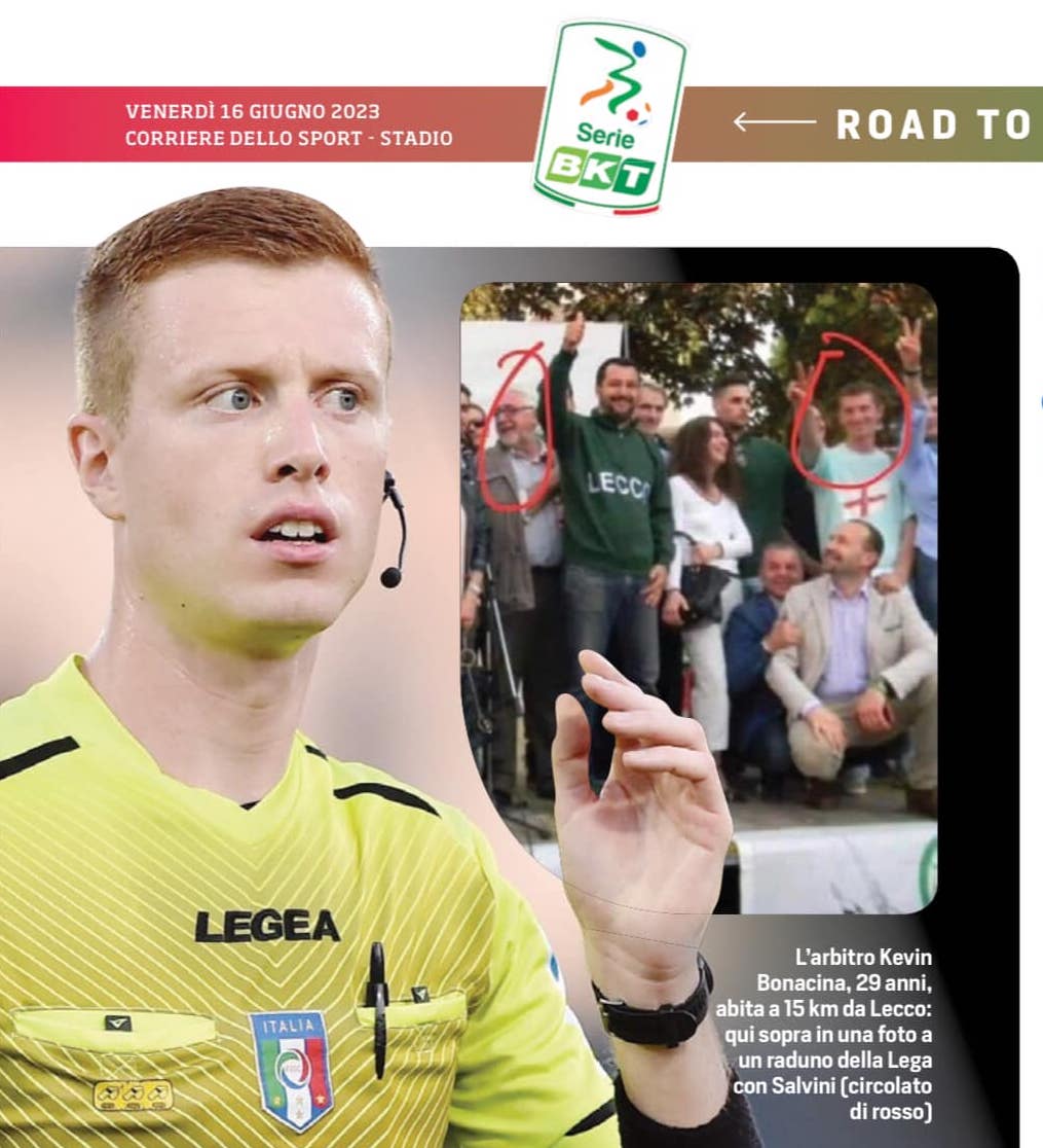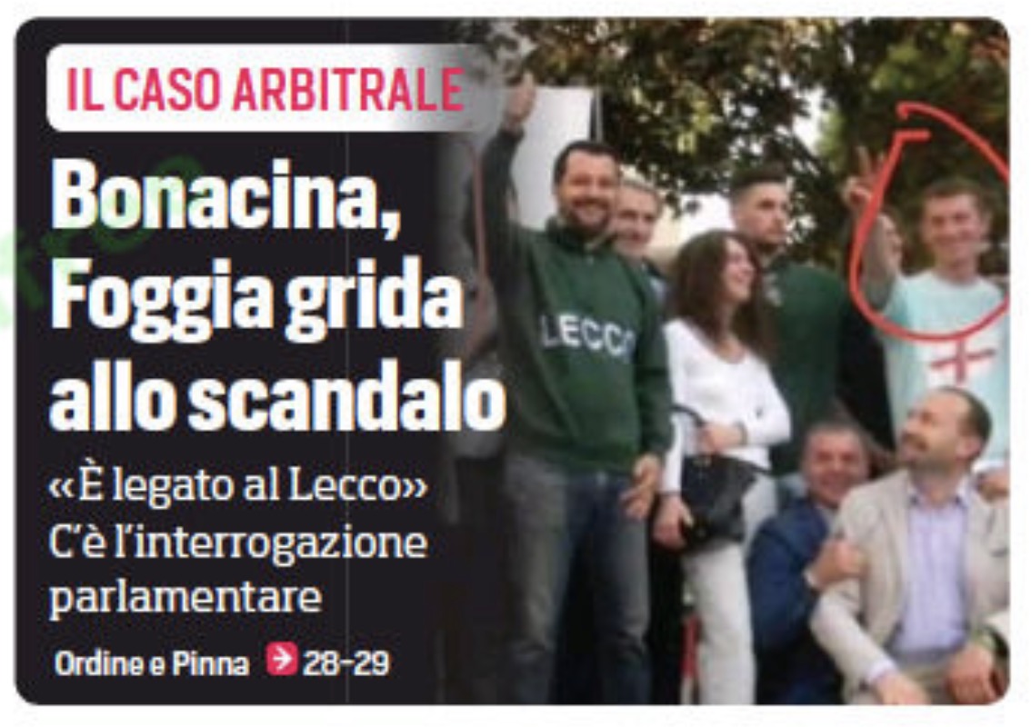Tra l’altro la pagina vede un intervento lucido del decano Franco Ordine – non addentratosi in affermazioni scivolose come fatto pensare dalla scandalosa prima pagina -, di dichiarata fede rossonera ma in grado di far capire come si sia andati oltre il limite del consentito. Non ci soffermiamo su tutta l’analisi tecnica relativa alla partita di Bonacina, sui retroscena riportati e via dicendo, ma arriviamo al dunque: sotto un elenco di fatti elencati con dovizia di particolari, ecco che compare la fake news relativa alla presunta appartenenza del fischietto alla Lega locale. Era il momento giusto per smentire questa voce assurda che gira da giorni, invece le si è dato credito.