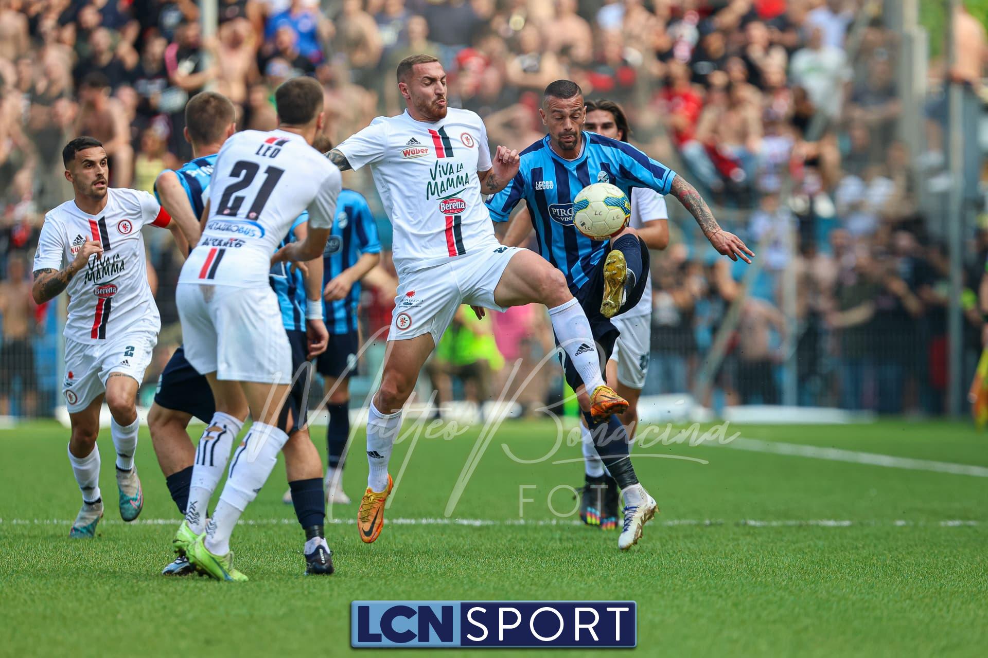 Al 78′ da rimessa laterale Mangni calcia subito forte alla figura, Dalmasso respinge come può in due tempi, sul rimpallo Lakti è bene appostato e insacca di prima intenzione per il 2-1 che fa esplodere il Rigamonti Ceppi.