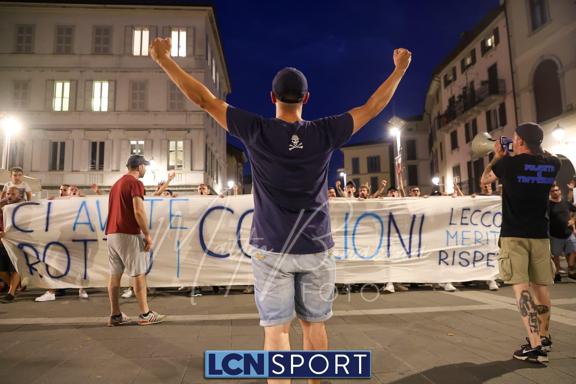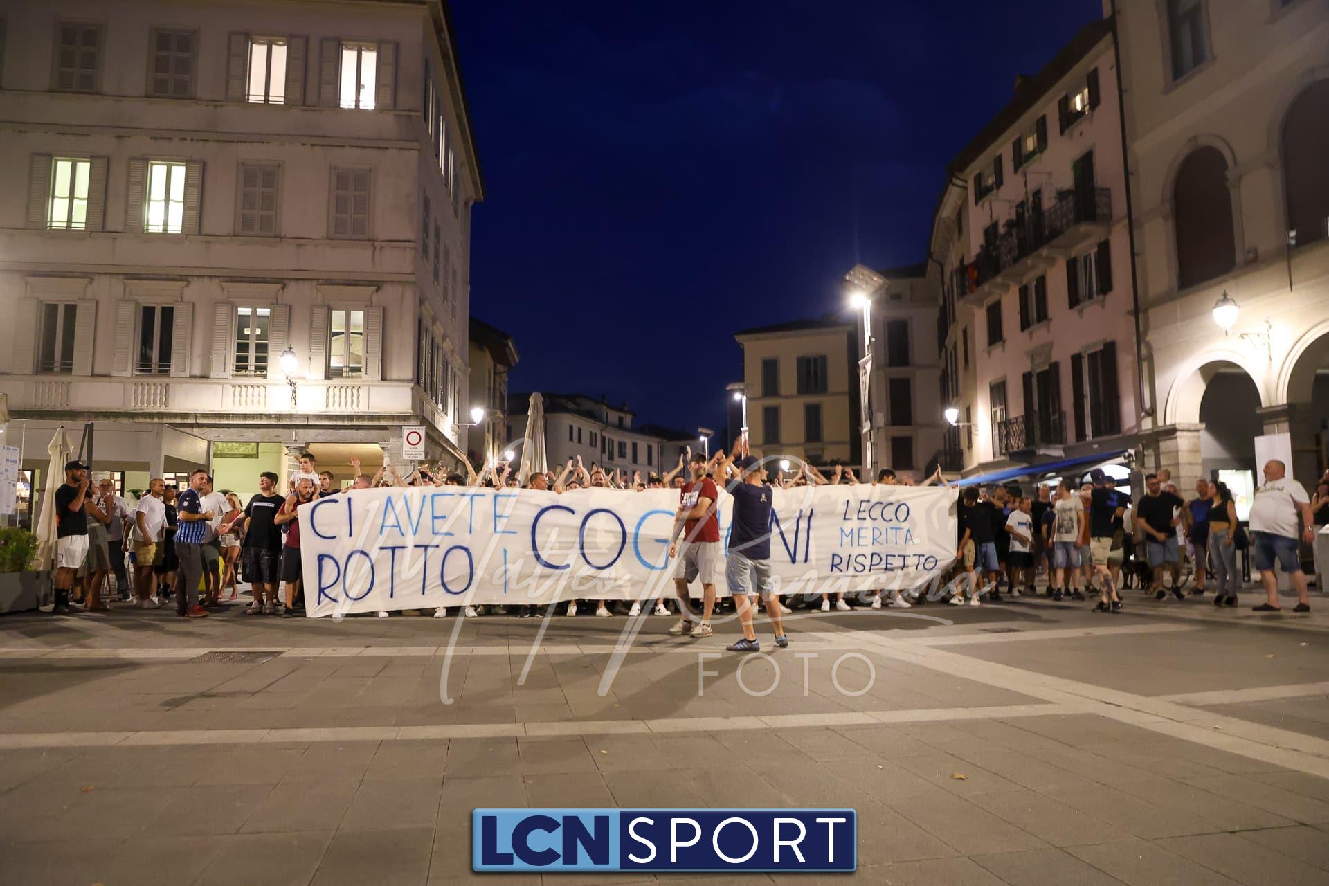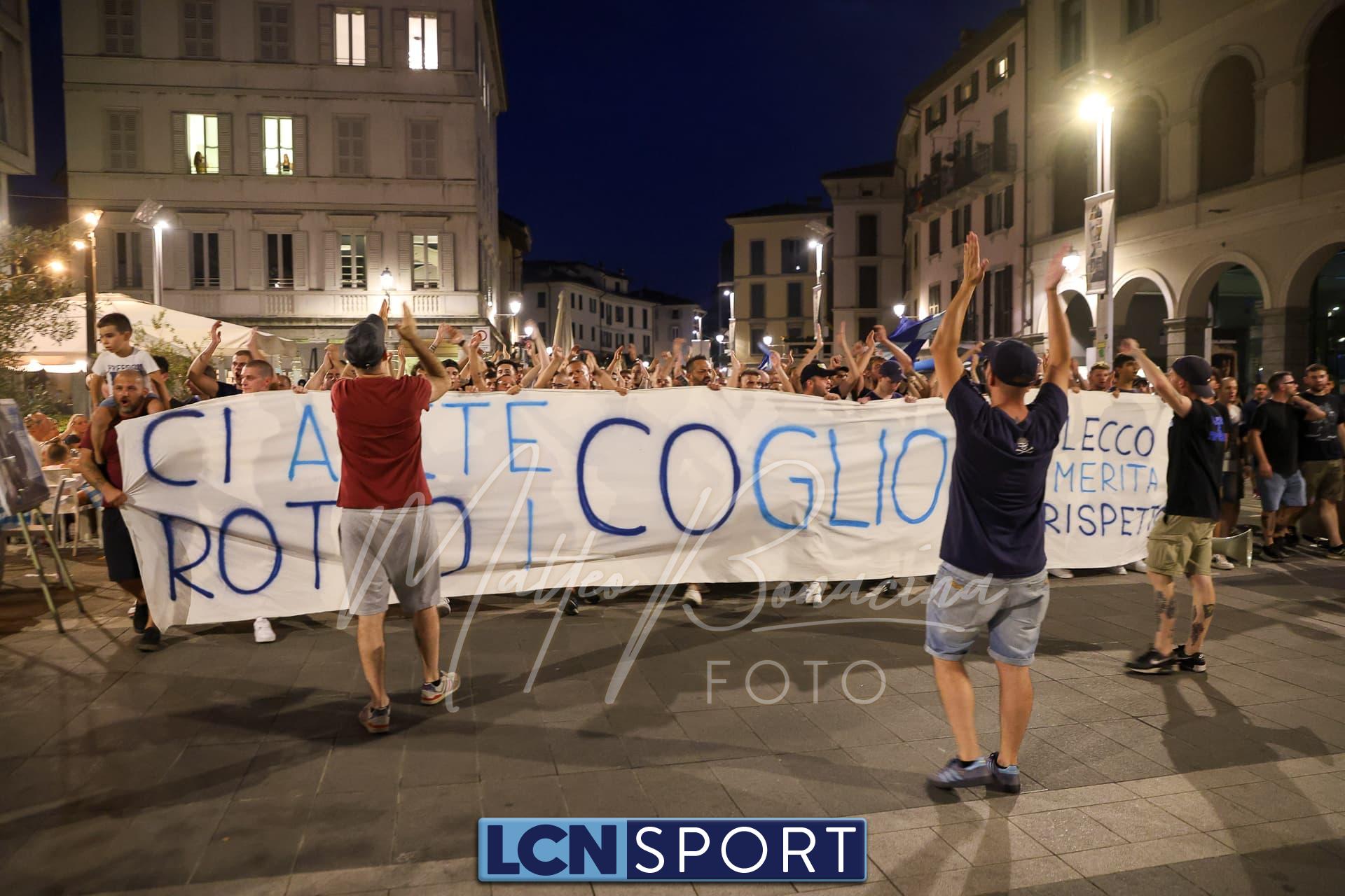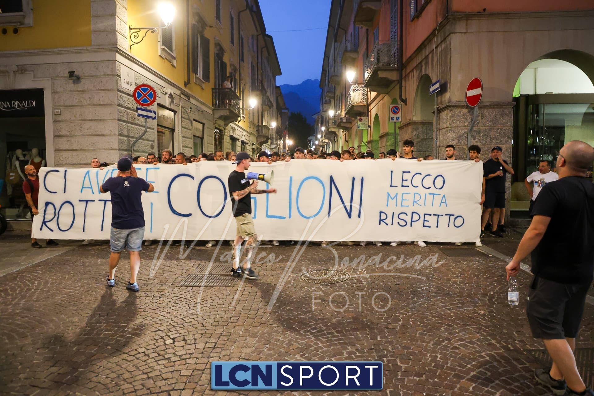 L’accettazione del ricorso del Perugia da parte del Collegio di Garanzia del Coni non può andare giù al Lecco e a Lecco. I tifosi blucelesti hanno organizzato in tempo zero una manifestazione per la serata di martedì, partita dal piazzale che si trova nella zona della Curva Sud dello stadio “Rigamonti-Ceppi”. Dopo l’ammassamento, il gruppone – circa trecento persone – si è trasferito in piazza Armando Diaz, davanti al Comune di Lecco, e da lì è partito in corteo verso le centralissime piazze del capoluogo fino ad arriare sotto la sede lecchese del Coni. Alla testa è stato messo un eloquente striscione: “Ci avete rotto i coglioni, Lecco merita rispetto”; non sono mancati i cori classici scanditi dalla Curva Nord (“Ogni volta che ti vedo/Il mio cuore batte forte/Lo sapete pure voi/Non ci fermerete mai”) e contro le istituzioni calcistiche che si stanno rendendo protagoniste di questo calpestamento del merito sportivo.