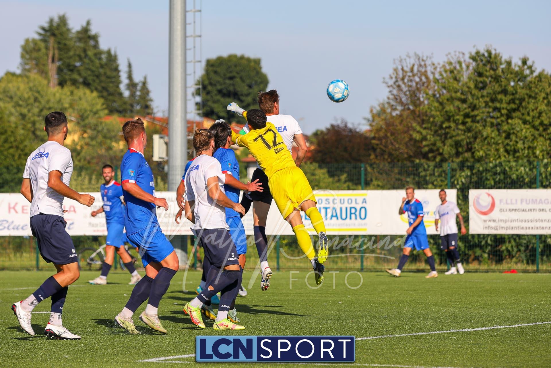 La partita si apre con il lancio di Ardizzone che, al secondo minuto, pesca Pinzauti in profondità: tiro forte e altro sopra la porta difesa da Maffi. Al 5’ Davide Caraffa, l’eroe di Olginate, penetra in area e calcia, ma il tiro è strozzato. Al 7′ Enrici crossa per Eusepi che viene anticipato in angolo, poi l’attaccante bluceleste insacca con un bel colpo di testa dal conseguente piazzato. Al ci prova Lepore dalla distanza, para Maffi in due tempi. Al 19′ Stefanoni scappa sulla trequarti e calcia forte: fuori di molto. Minuto 29: Pinzauti scatta ancora una volte alle spalle della difesa e batte Maffi con un bel diagonale che bacia il palo e s’insacca. Al 38’ ennesima palla al bacio di Lepore – nettamente il migliore dei suoi – per Eusepi che non trova il contatto a pochi metri dalla porta. Ultimo sussulto al 42’: Lepore su punizione, palla fuori di poco.