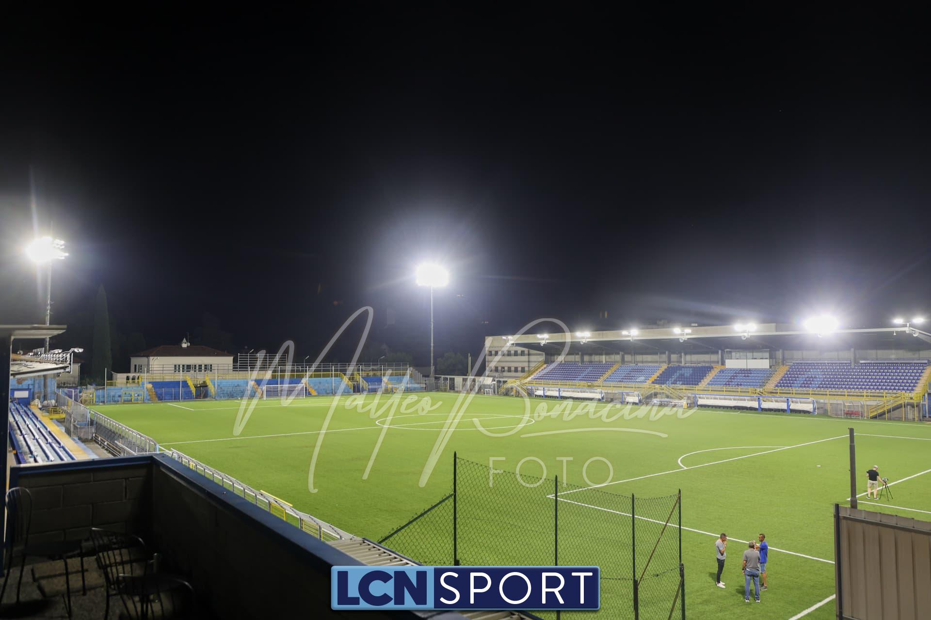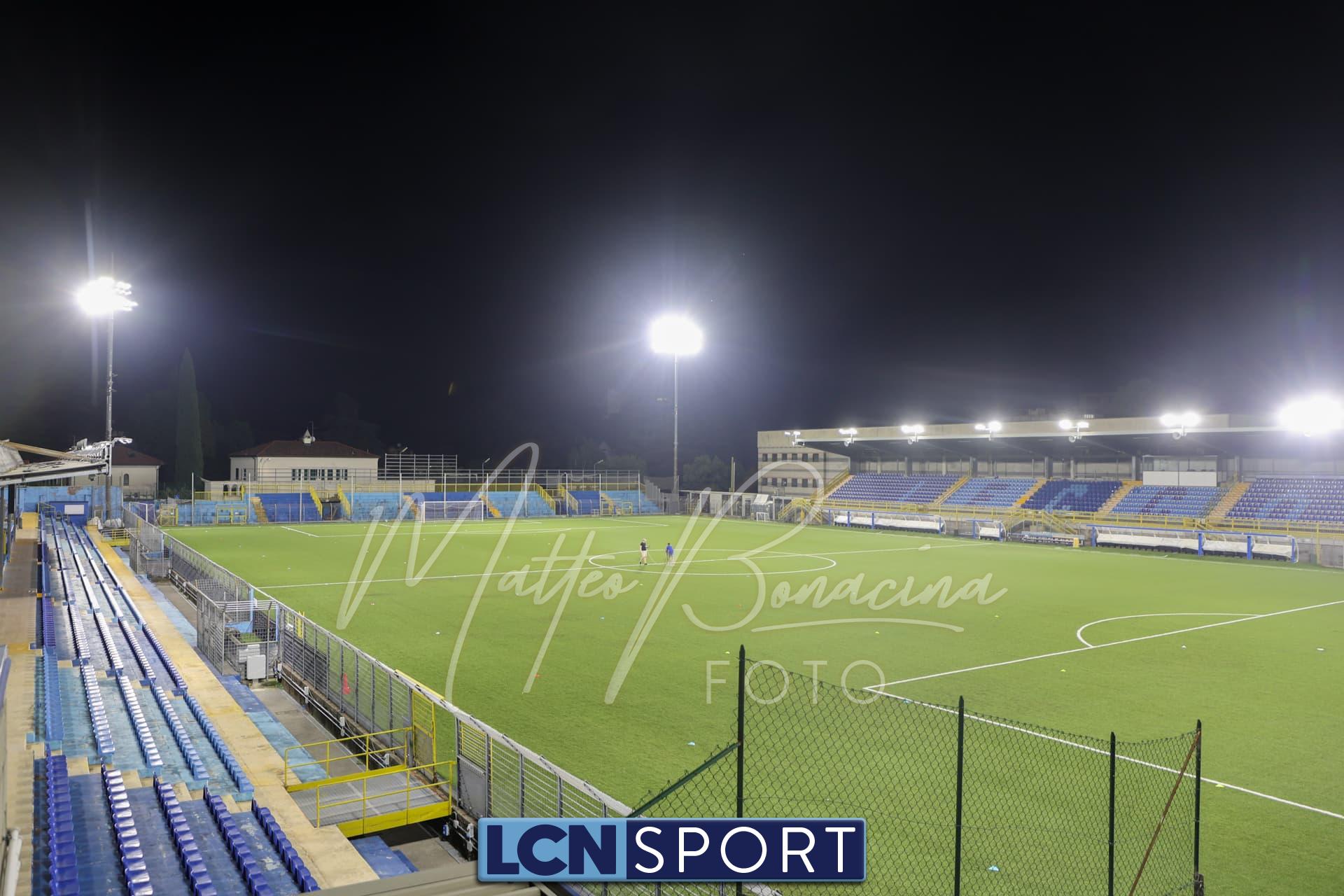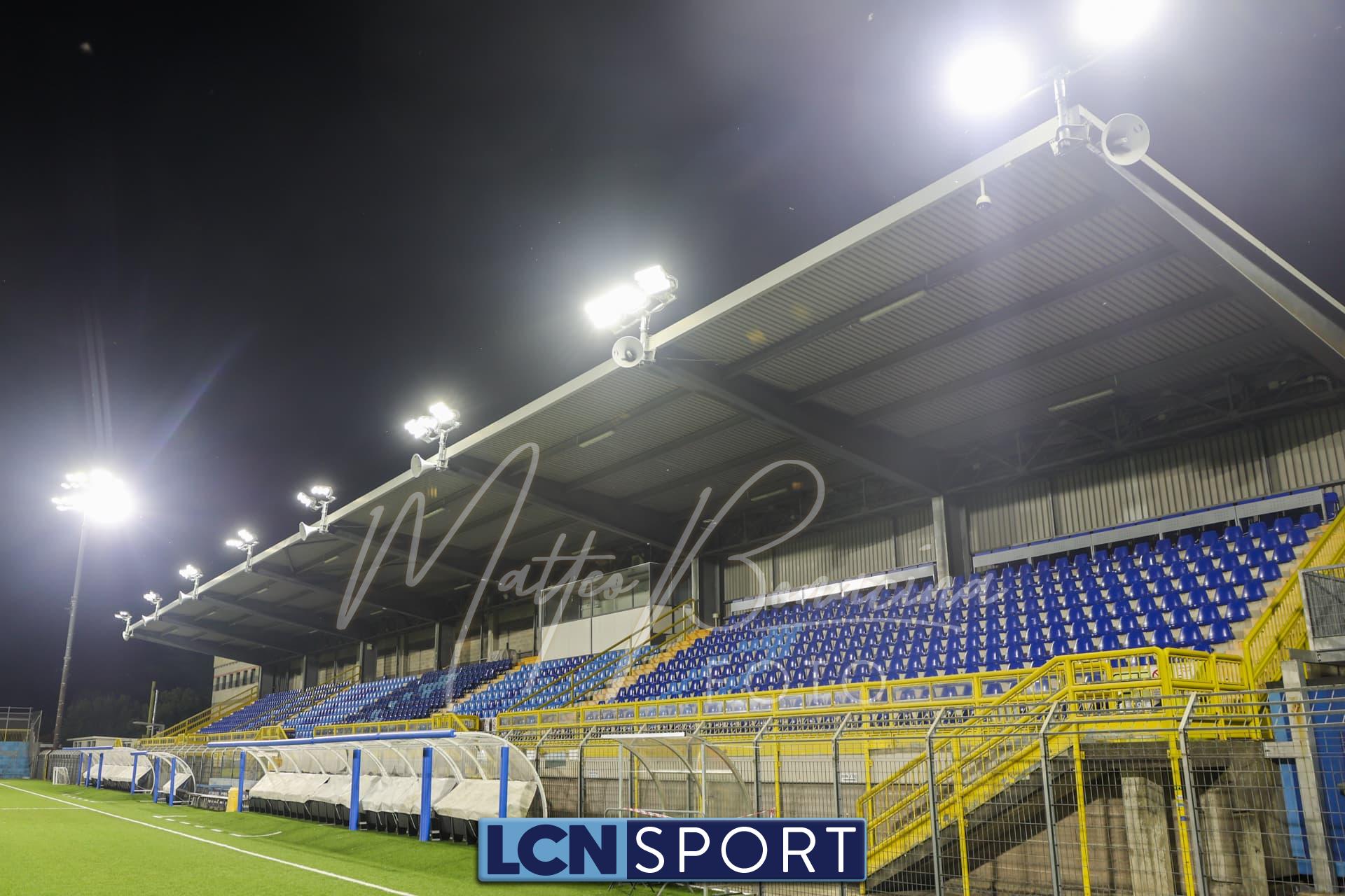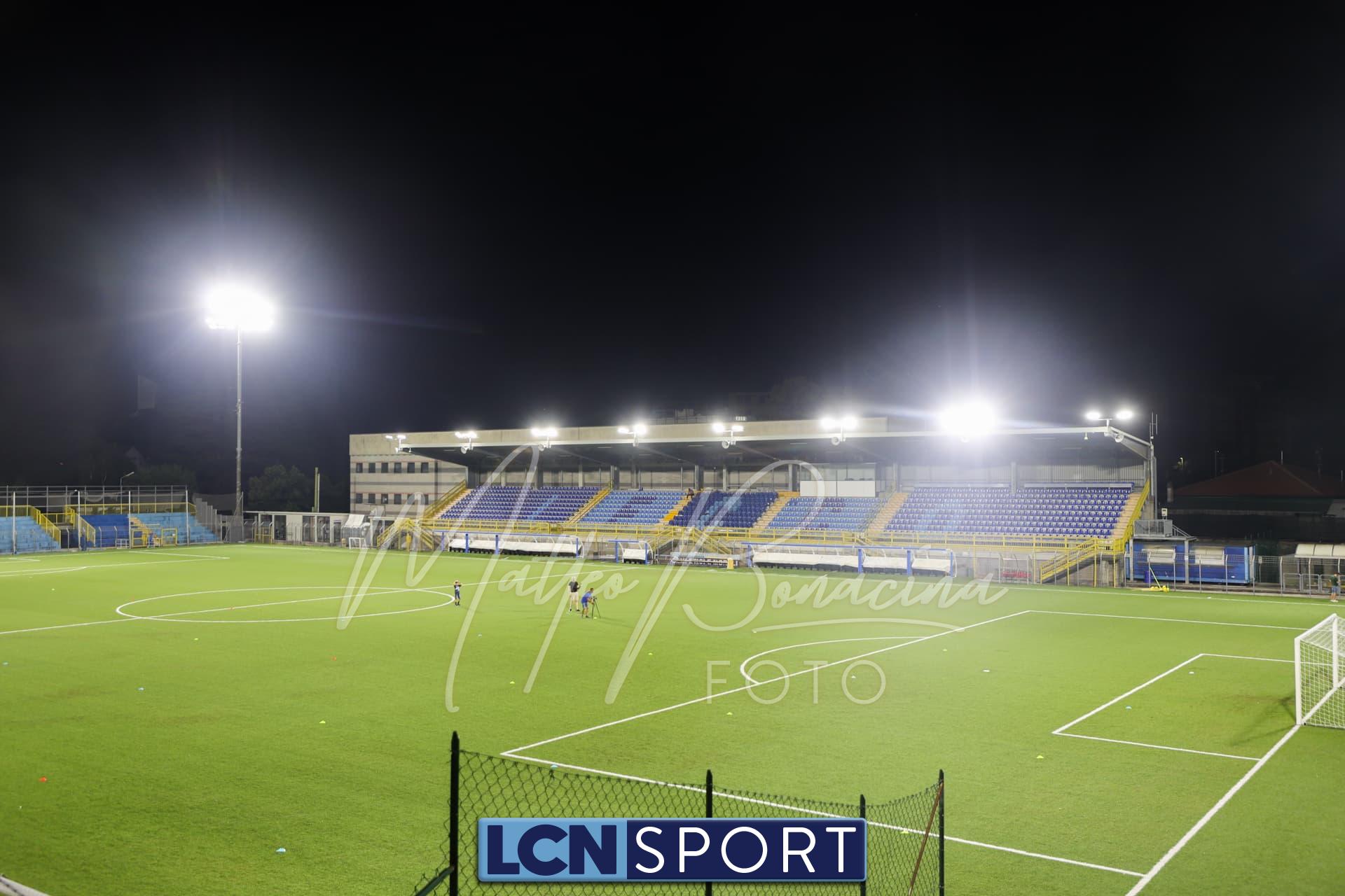 Lo stadio “Rigamonti-Ceppi” di Lecco ha il suo nuovo impianto d’illuminazione. Mancava il passaggio del primo collaudo funzionale, effettuato dalle 21.30 in avanti di venerdì 18 agosto. Durante la mattinata era, invece, stato portato a termine il collegamento delle lampade installate sulle torri faro insieme alle strutture di sostegno: 22 proiettori per ogni angolo, cui vanno sommati quelli posizionati dai tecnici della Livio Impianti tra Distinti e Tribuna. Decisamente impattante il colpo d’occhio: negli anni passati l’impianto era stato spesso criticato per la propria efficienza e vetustà, mentre ora viene garantita un’illuminazione a giorno. L’efficienza è compresa tra i 1000 e i 1200 lux richiesti nelle aree coperte dalle telecamere fisse. Posizionati i tornelli, si va avanti sul fronte dei box destinati alle televisioni e su quello dei tabelloni led destinati al passaggio dei messaggi pubblicitari.