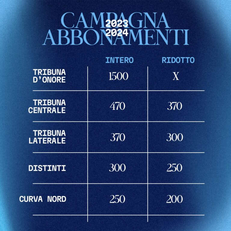 - TRIBUNA CENTRALE 470€ (intero) e 370€ (ridotto)