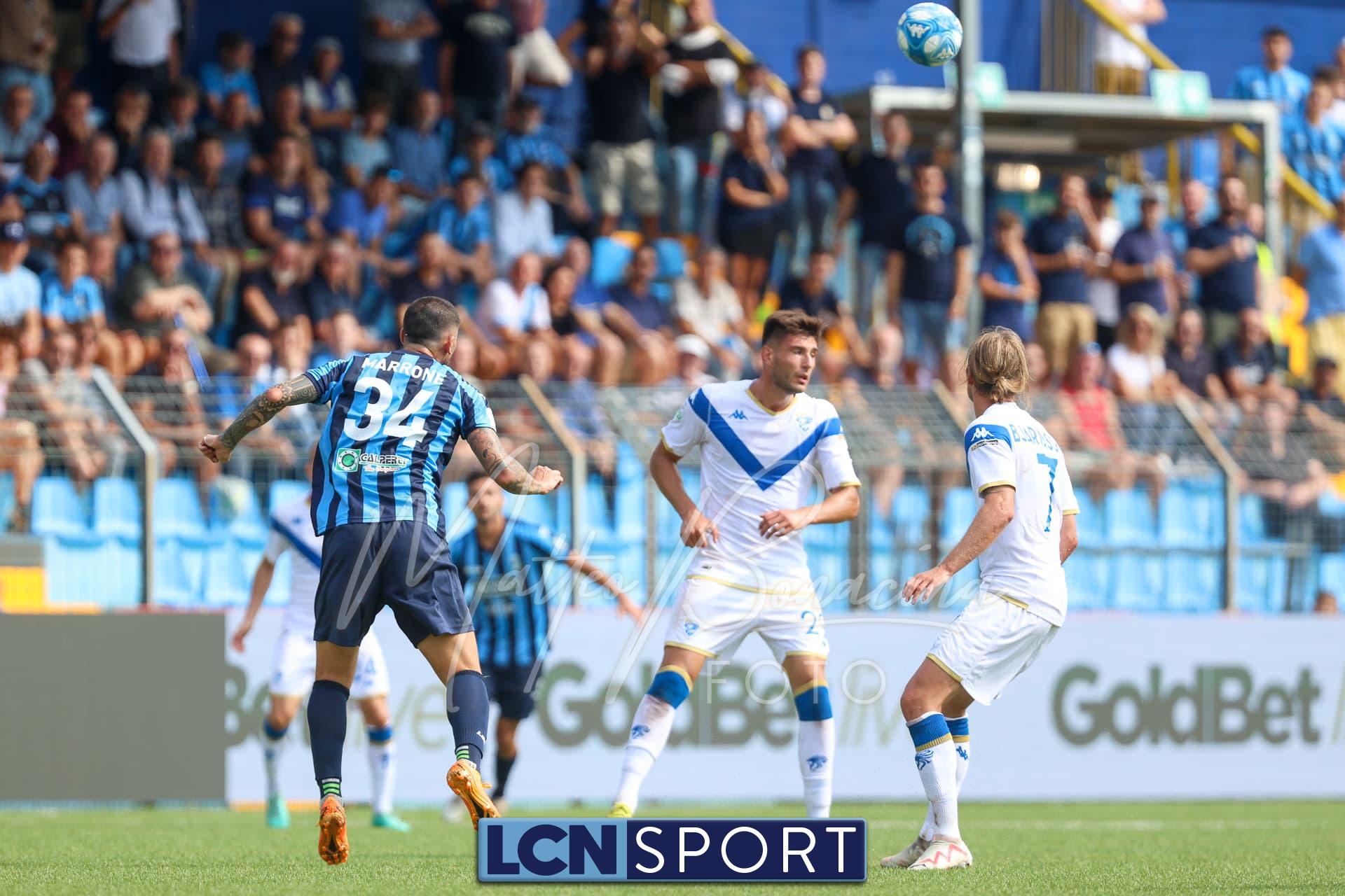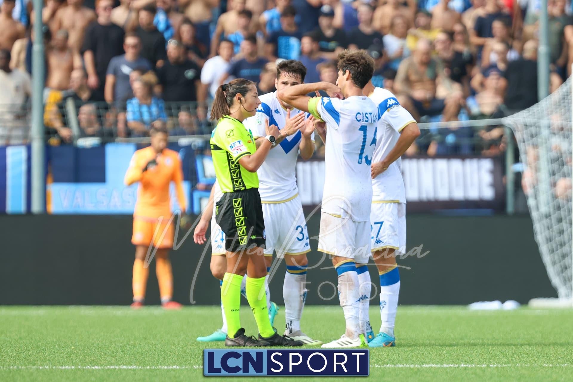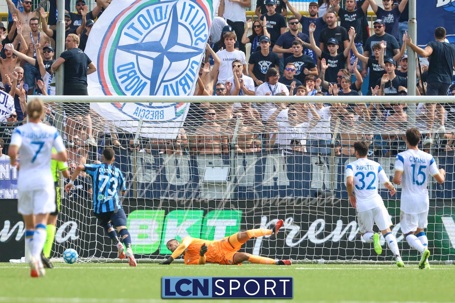 Al 14′ Di Stefano ubriaca la difesa bresciana a sinistra: dribbling secco per saltarne uno, quindi “brucia” anche Dickmann che lo stende. Ferrieri Caputi indica il dischetto (confermato dal Var): Novakovich la spara potente e precisa sul palo e la palla esce. Sfortuna nera per i blucelesti.