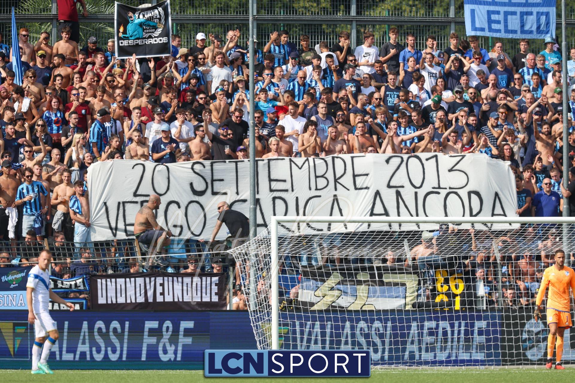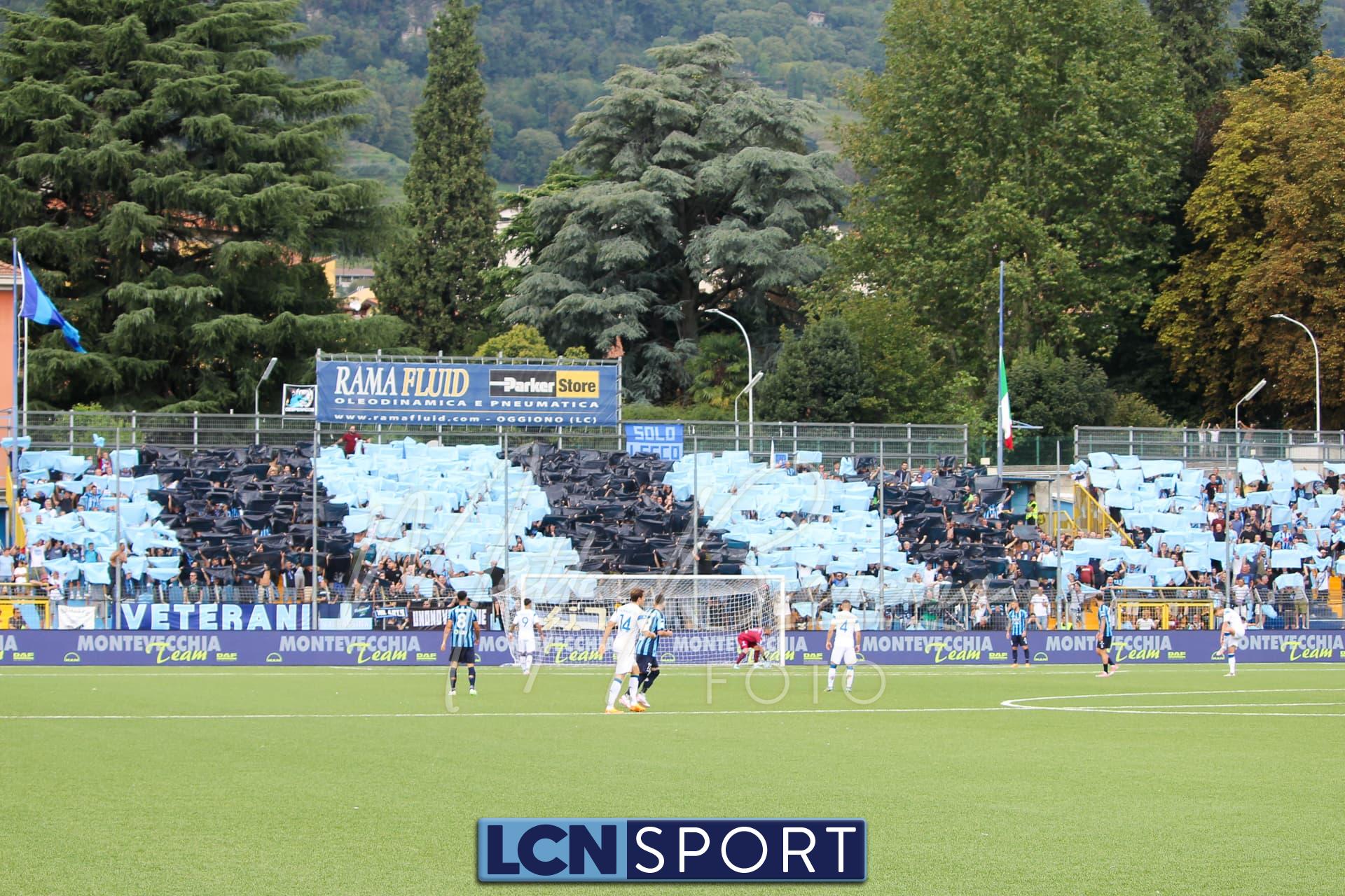 Il Brescia parte fortissimo e mette in ambasce la difesa lecchese: guadagna due angoli, quindi cross dentro di Paghera, sponda di testa di Papetti e destro al volo di Borrelli che la mette sotto la traversa con colpevole ritardo di Melgrati, fuori posizione. Immobile la difesa bluceleste, su azione non certo avvolgente delle rondinelle. È 0-1.