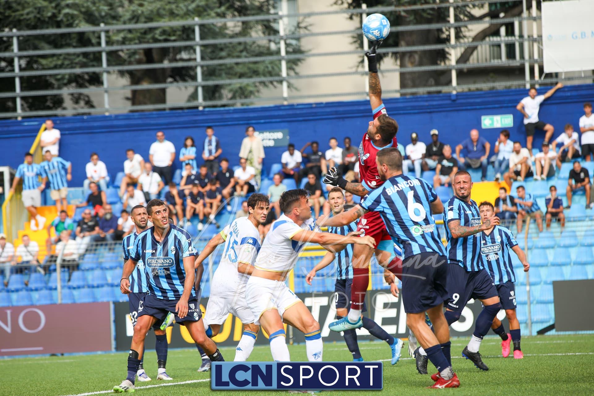 Ancora Lecco, che mette alla corde gli avversari: azione prepotente di Novakovich a sinistra che difende palla e prova a sfondare, nella mischia la parata di Lezzerini col corpo. Subito dopo cross da destra e piattone di Giudici che incontra una respinta davanti alla porta.