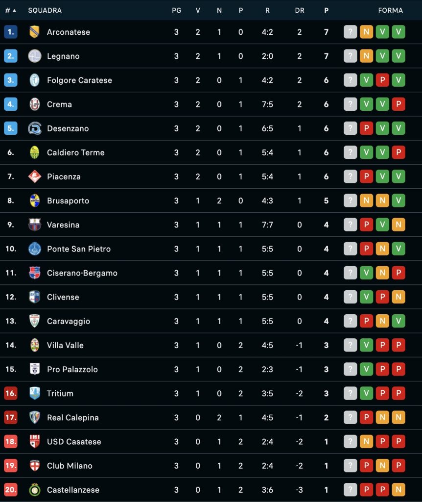La Casatese mette in cascina il primo punto della stagione 2023-2024. La compagine guidata da mister Joey Commisso, sconfitta da Ponte San Pietro e Caldiero Terme nelle prime due gare post vittoria in Coppa Italia con il Villa Valle, ha pareggiato in casa con il Brusaporto nel primo turno infrasettimanale della stagione: 1-1 con i bergamaschi, sopra durante il primo tempo grazie alla rete di Castelli e raggiunti all’inizio della ripresa dal bel tiro scagliato dal limite dell’area da Romano. I brianzoli hanno beneficiato dell’espulsione di Invernizzi al quarto d’ora e hanno costruito varie occasioni da gol, ma si sono dovuti accontentare di un solo punto al termine della contesa. Domenica pomeriggio arriverà il difficile incontro sul campo del Piacenza, dai più indicata come la fuoriserie del girone B di Serie D ma appena scivolata in casa della Folgore Caratese.