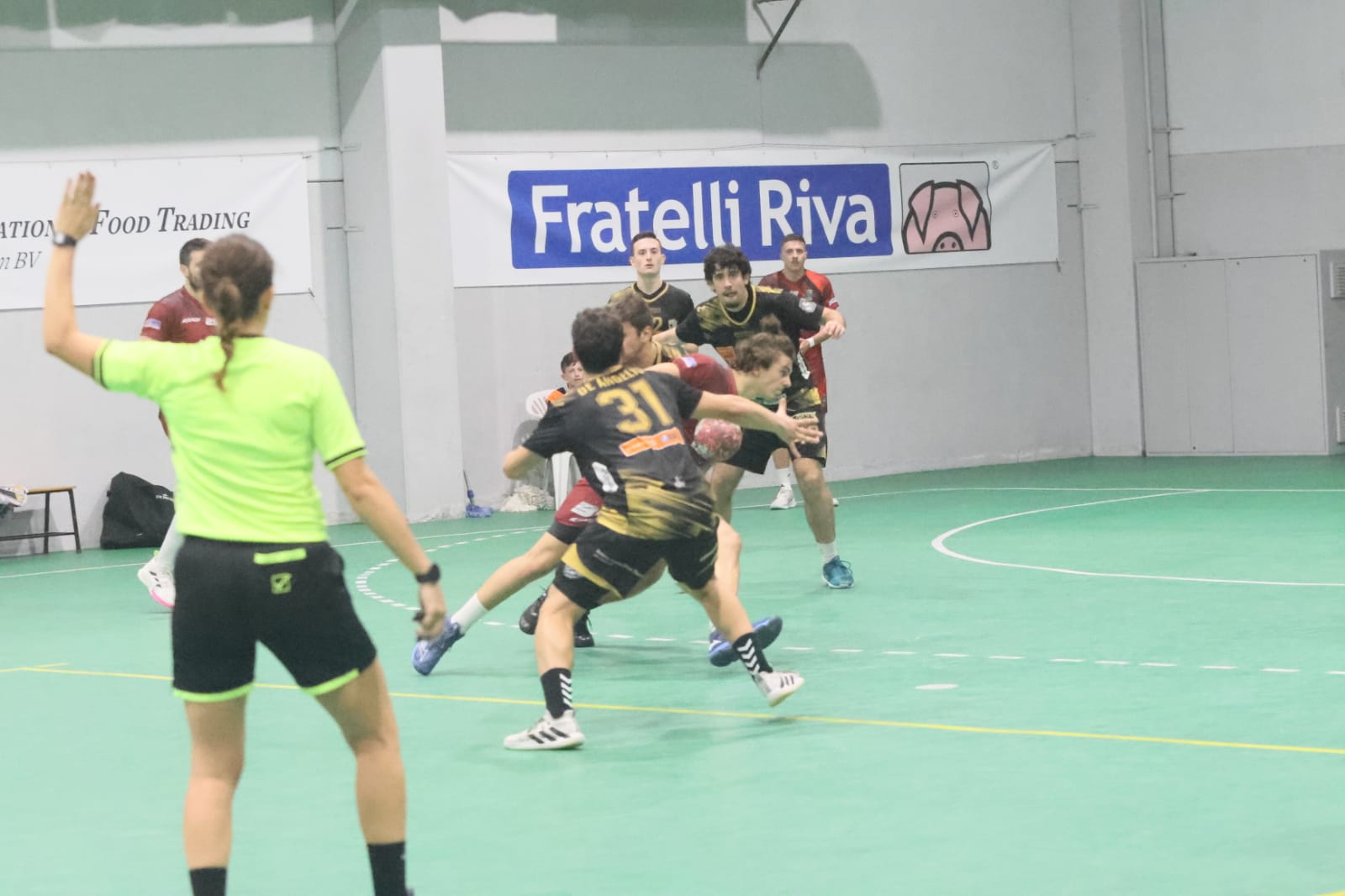 Una partita molto equilibrata sin dalle prime battute vede gli ospiti andare avanti di due reti, ma i padroni di casa sono capaci di ricucire lo strappo e portarsi sul +1 in ben sei occasioni. Il primo tempo termina in parità, 14-14. Nella ripresa i marchigiani provano un primo allungo (16-18) e sono subito ripresi dai gol di Garroni e Colombo, quindi è 19-21 ma Garroni e Tagni riportano l’equilibrio. Poco dopo tocca al nuovo acquisto Bernachea e a De Angelis firmare il 23-23. L’ultima parità (26-26) arriva a quaranta secondi dalla sirena, ma a dieci il Camerano trova la rete che vale il successo e la beffa per un volenteroso Molteno.