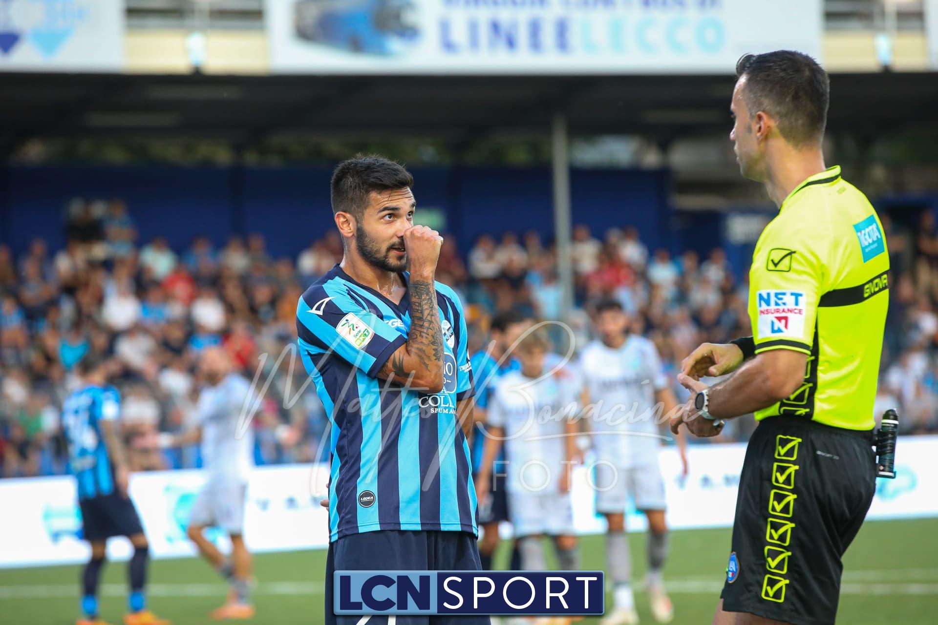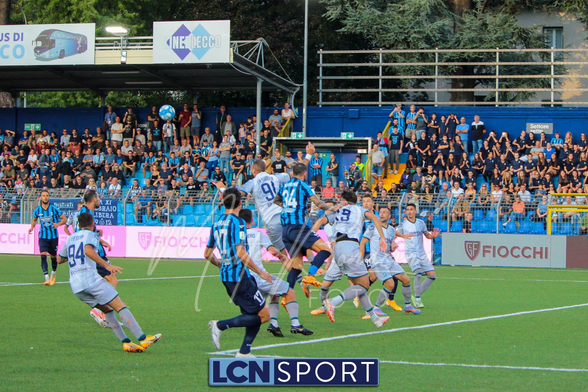Passano due minuti e il Lecco reagisce subito: calcio d’angolo pennellato da Lepore per Buso che stacca alle spalle di Kourfalidis e infila sotto la traversa. Il tempo di battere a centrocampo e la Feralpi si invola a sinistra: Felici infila Galli e Battistini, Marrone non chiude e il piattone in diagonale dell’attaccante dei bresciani è vincente. In quattro minuti tre gol e il Lecco è sotto. Anche mentalmente.