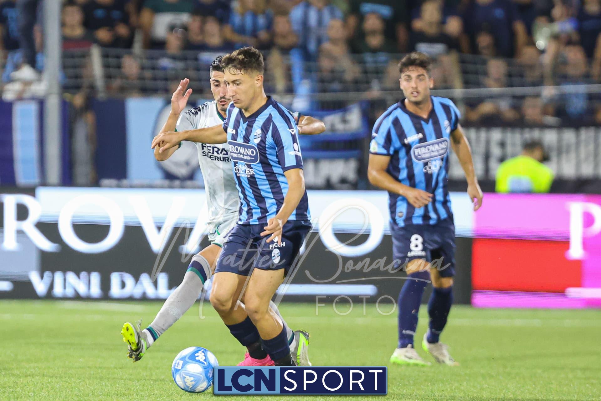 Nel secondo tempo dentro Buso e Giudici per Di Stefano e Guglielmotti. Al 51′ il vantaggio Feralpi nasce da una disattenzione della difesa che permette agli ospiti di giocare una sorta di flipper in area di rigore senza riuscire a prendere palla, cross basso per Balestrero che infila Saracco da posizione centrale.