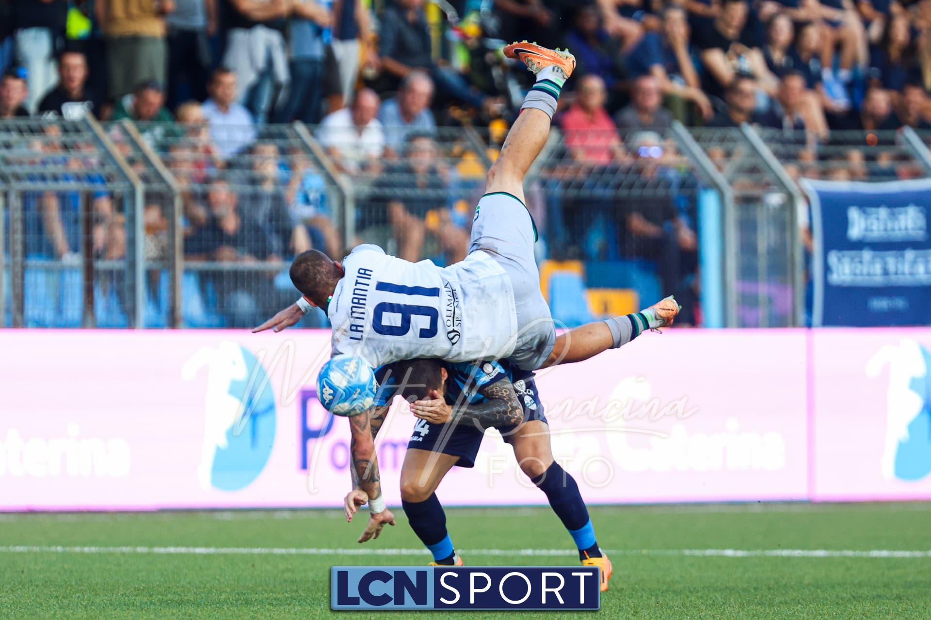 Al 40′ da angolo Battistini travolge tre avversari, La Mantia rimane a lungo a terra. Nel recupero tentativo velleitario dai 40 metri di Fiordilino.