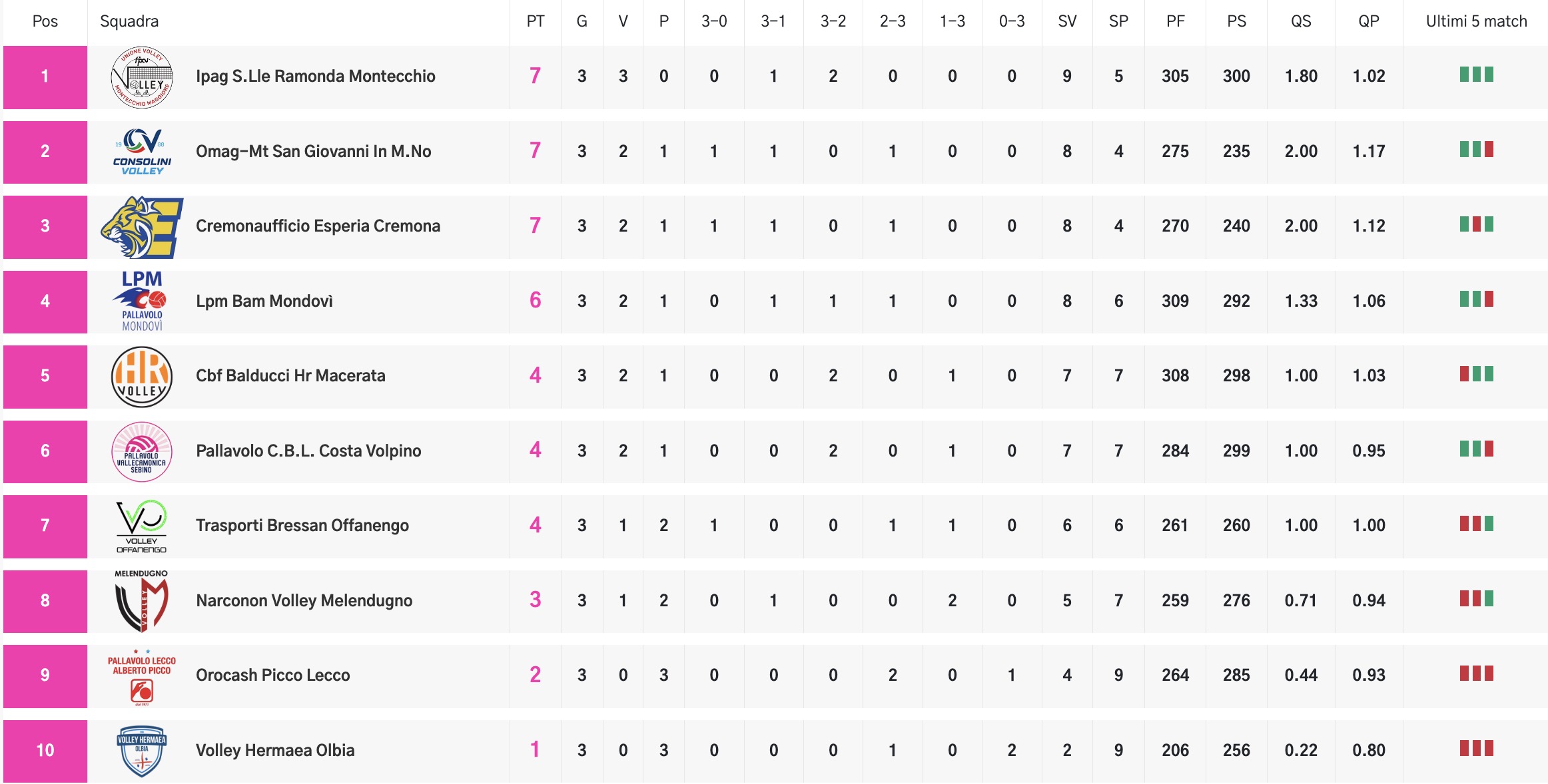 Offanengo: Ulrike 8, D’Este 2, Sironi 10, Trevisan 13, Tajè 3, Abila 14, Pelloni (L), Modesti, Cantaluppi, Tommasini. Ne: Martinelli, Compagnin, Sassolini, Doneda. All. Bolzoni.