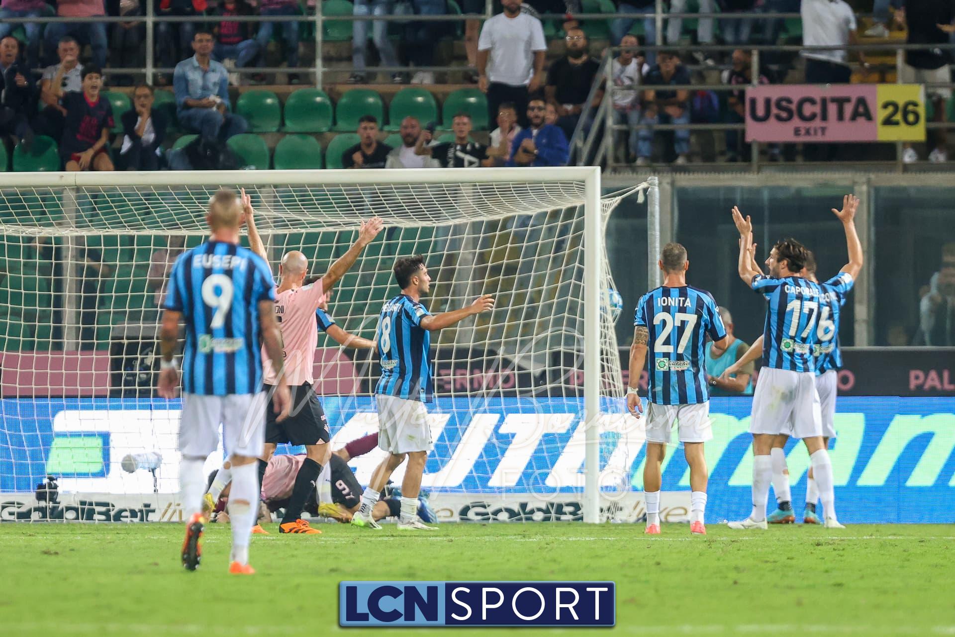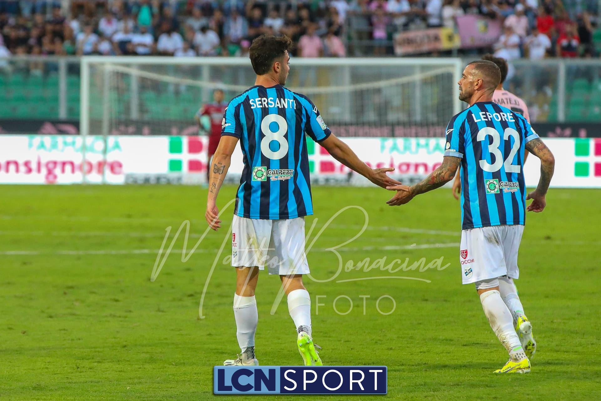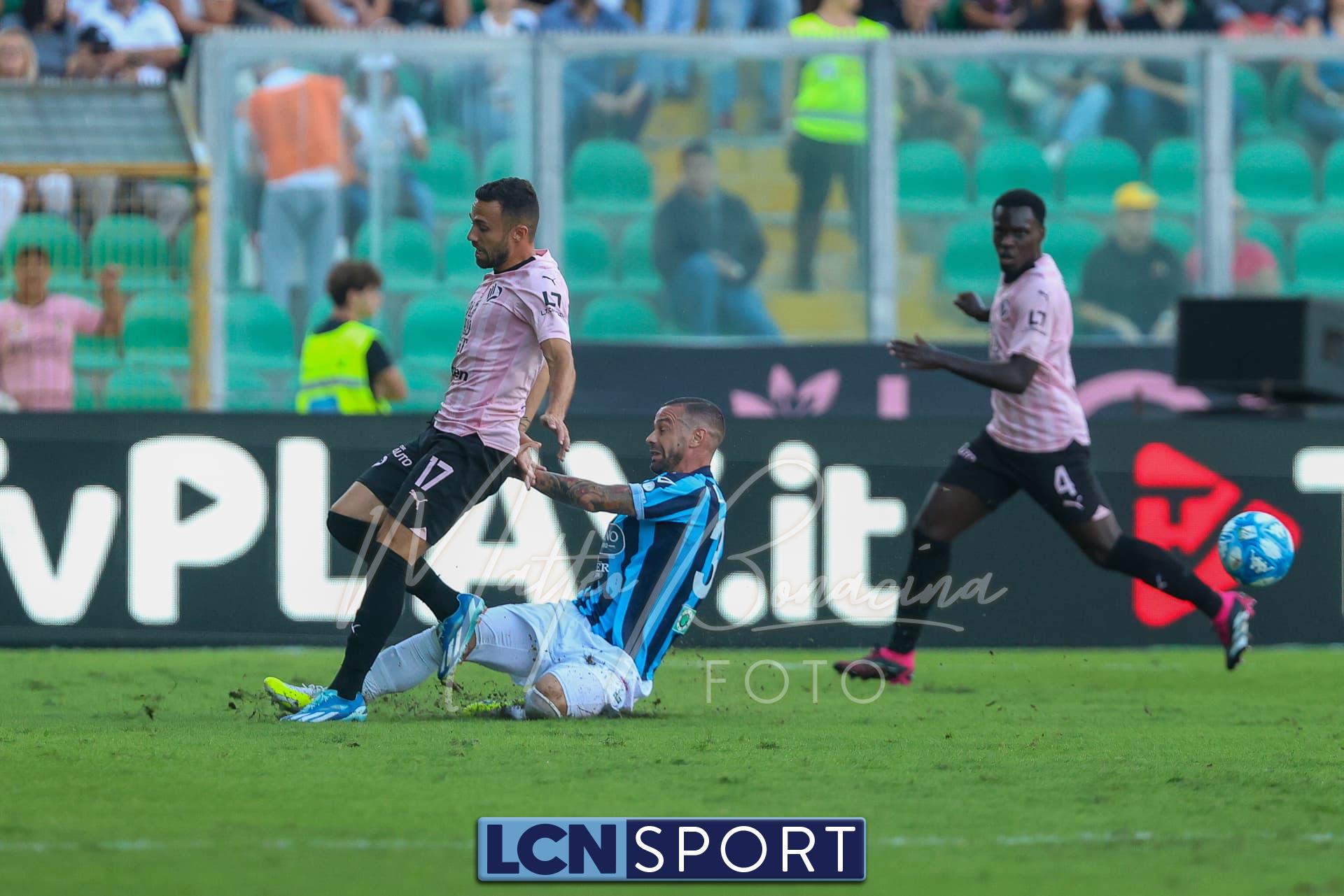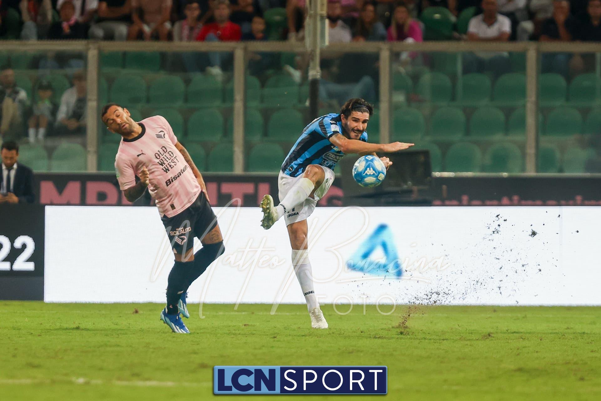 Rispondono i siciliani con Stulac da fuori al 10′, Melgrati allontana coi pugni. Al 13′ cross da sinistra e intervento al volo di tacco di Soleri, nessun problema per il portiere bluceleste. Minuto 20: contropiede del Palermo, calcia Mancuso con deviazione, Melgrati facile.