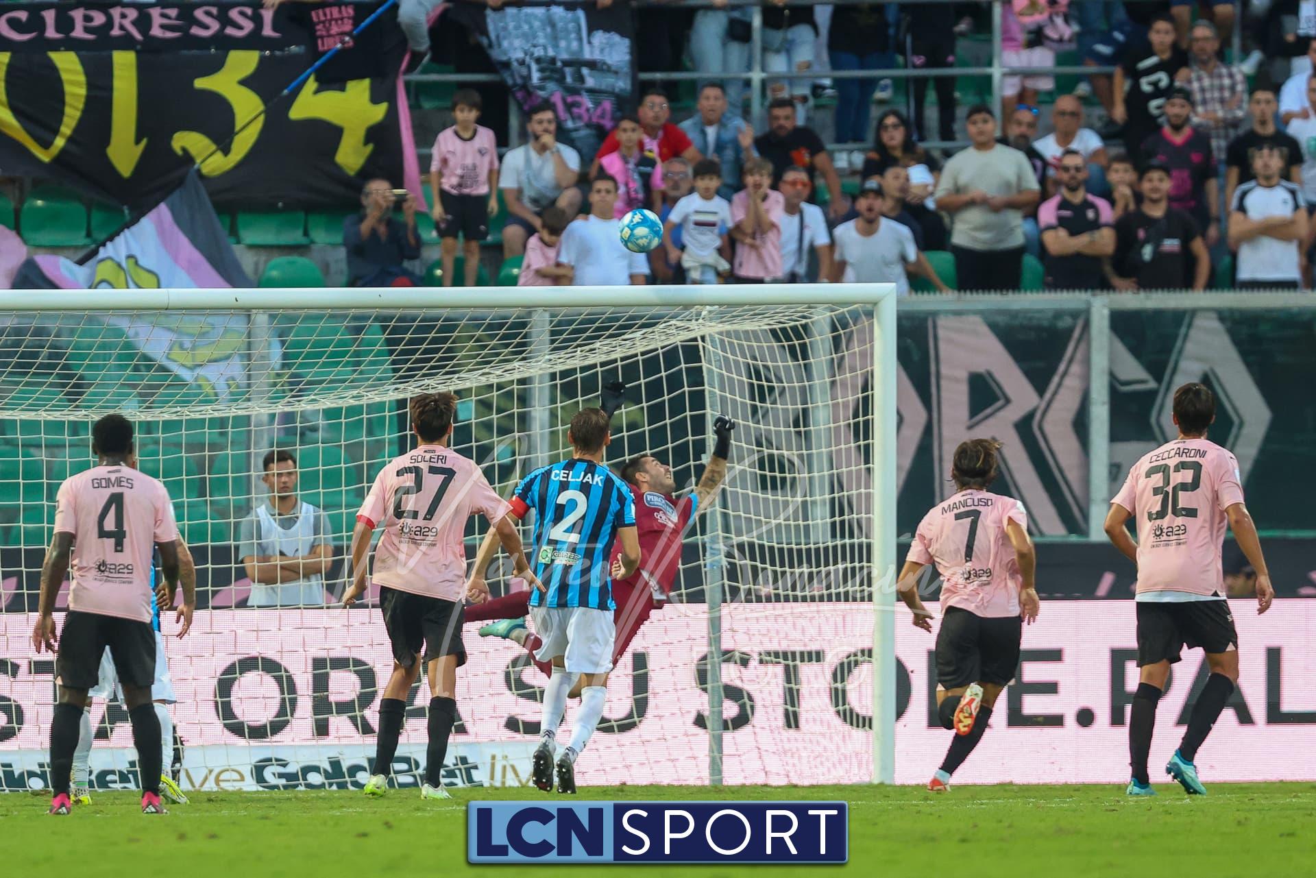Prima occasione per il Palermo dopo un minuto e mezzo, sull’asse Lund-Mancuso che va al volo di mancino, Melgrati respinge. Sull’angolo colpo di testa di Soleri che ha tempo per staccare, la schiaccia ma non inquadra la porta.