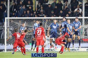 Calcio di punizione di Lepore per la testa di Novakovich, che la impatta quasi a botta sicura ma Dragowski ha un grandissimo riflesso da portiere di livello qual è. Il Lecco resta davanti ma non riesce a sfruttare il momento positivo.