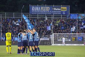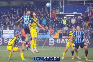 Il Lecco reagisce con un destro altissimo dal limite dell’area di Buso. Al 21′ potenziale occasione per Novakovich che raccoglie un bel cross da destra ma non riesce a trovare il pallone e si schianta su Chichizola. I blucelesti giocano con il piglio delle grandi e al 23′ pareggiano: angolo di Lepore su cui Ionita svetta e serve un cioccolatino che Novakovich non può che insaccare, con merito personale e di squadra. Poco più tardi altra grande chance per Ionita che svetta con tempismo perfetto dal cross a sinistra di Caporale: fuori di poco. Ancora un cross da destra e tiro al volo, difficile, di Marrone, parato da Chichizola.
