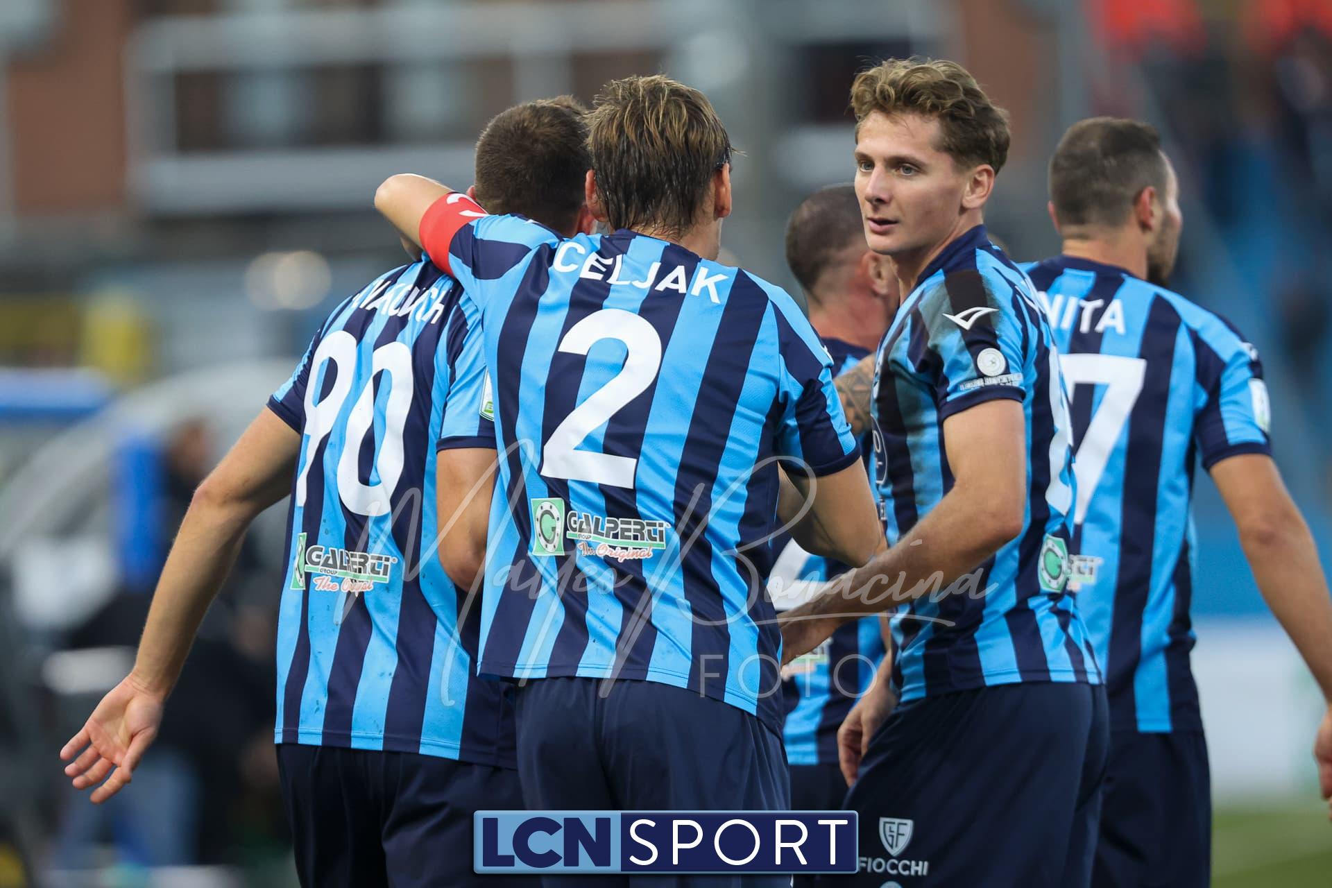 Lecco (4-3-3): Melgrati; Lemmens (dal 14′ s.t. Guglielmotti), Celjak, Marrone (dal 33′ s.t. Battistini), Caporale; Ionita, Degli Innocenti (dal 19′ s.t. Galli), Sersanti; Buso (dal 33′ s.t. Tenkorang), Novakovich, Lepore (Saracco, Bianconi, Eusepi, Tordini, Pinzauti, Donati, Di Stefano, Agostinelli) All. Bonazzoli-Malgrati.
