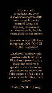 Per quanto riguarda il Derby del Lario, è ormai consolidata la scelta dell’Osservatorio: da Roma è arrivata l’indicazione, quasi scontata, legata all’utilizzo della fidelity card emessa dal Lecco; sarà il Gos a dover applicare praticamente la misura, ma gli ultras – nello specifico i gruppi Cani?Sciolti e UnoNoveUnoDue – hanno già fatto sapere che al “Sinigaglia” non ci saranno, portando avanti quella battaglia iniziata ormai nell’estate nel 2009 con l’entrata in vigore della tessera del tifoso. Quello strumento, poi bocciato dal Consiglio di Stato, negli anni è stato sostituito da uno che gli assomiglia quasi in tutto e per tutto, con la differenza che non permette di essere utilizzato come carta di credito come la “madre”. Tra l’altro vanno ricordati gli ultimi due precedenti: nel 2019, per la Poule Scudetto di Serie D, le restrizioni legate ai soli 300 tagliandi messi a disposizione dei blucelesti generarono dei disordini fuori dallo stadio, mentre a ottobre dello stesso anno si giocò in Serie C, non vennero messi paletti e filò tutto liscio. Questo per la serie: più stringi le maglie, più generi tensione e più rischi di andare incontro a situazioni spiacevoli.
