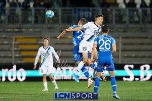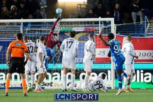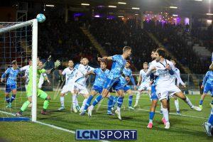 Brivido all’82’: sul cross da destra Celjak la calcia addosso a Gabrielloni e il rimpallo per poco non sorprende un attento Saracco.