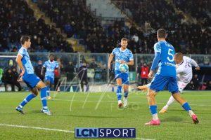 La più grande occasione della partita alla mezz’ora: punizione-schema con gran tiro di Crociata, deviazione che manda la palla sul palo e Lemmens si divora il vantaggio mettendo clamorosamente fuori il tap-in quasi a porta vuota.